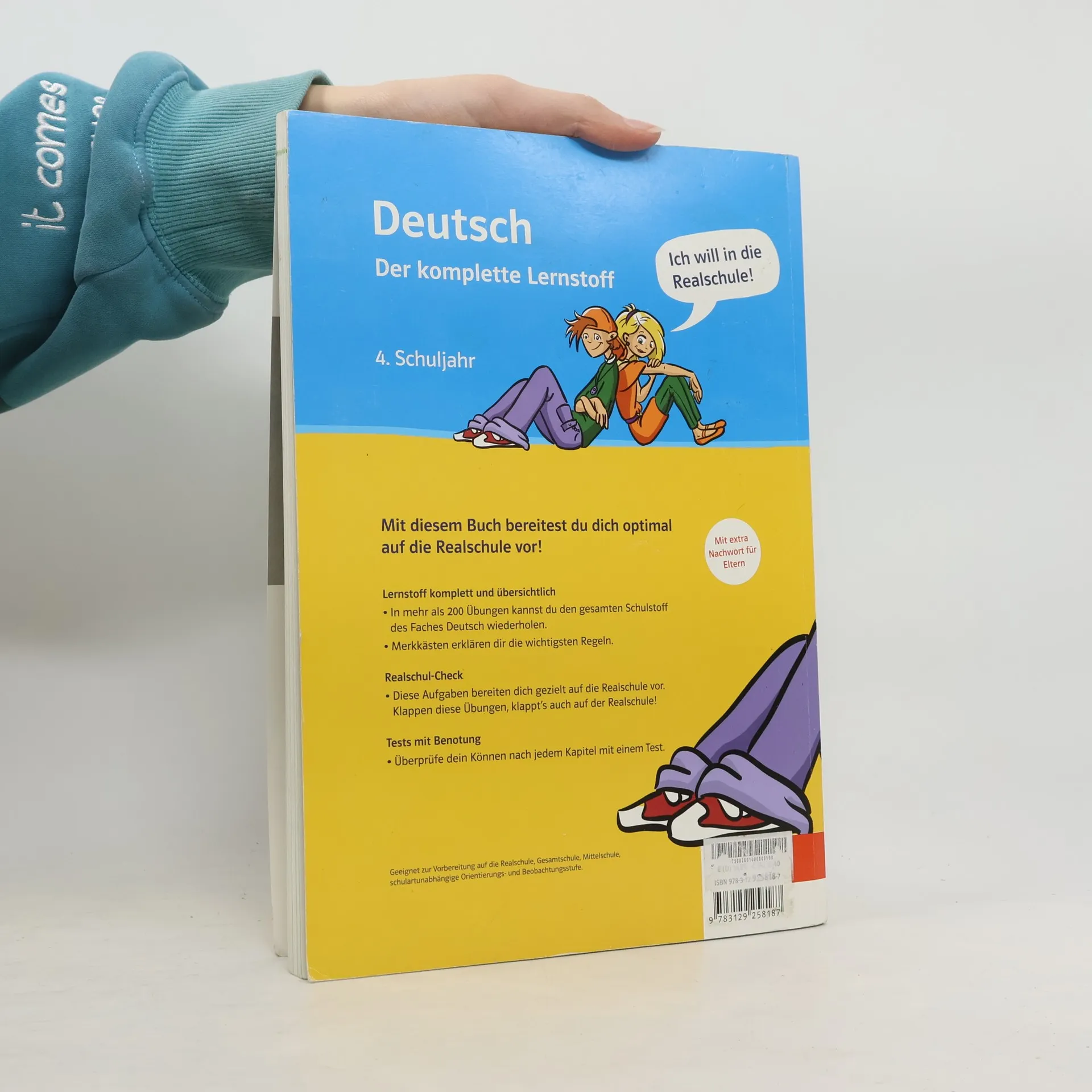 Mit vorliegender Lernhilfe kann der Schüler den gesamten Stoff der 4. Klasse wiederholen oder wahlweise die Themen trainieren, in denen er sich verbessern möchte. Der Band enthält die Gebiete Rechtschreibung, Grammatik, Texte verfassen und Texten Informationen entnehmen. Es werden zahlreiche Übungen angeboten, nach jedem Kapitel ein Test, die Lösungen in einem separaten Lösungsheft. Das Besondere: Eingefügt ist immer wieder ein Realschul-Check, der gezielt auf die Anforderungen in der Realschule vorbereitet. Neben den zahlreich angebotenen Lernhilfen für Klasse 4 überall einzusetzen. . - In mehr als 200 Übungen kann der gesamte Stoff für Klasse 4 im Fach Deutsch wiederholt werden. Mit Realschul-Check und separatem Lösungsheft.