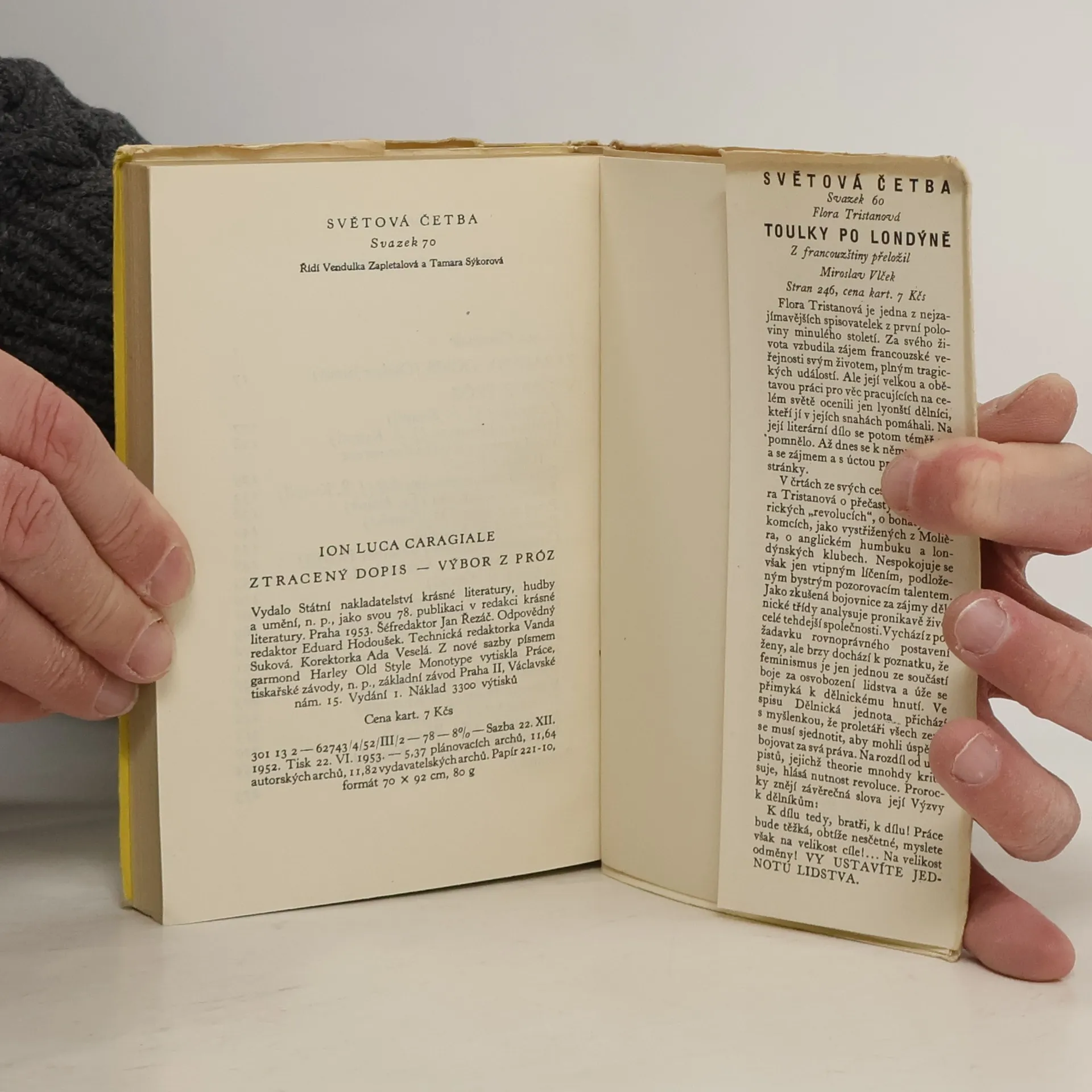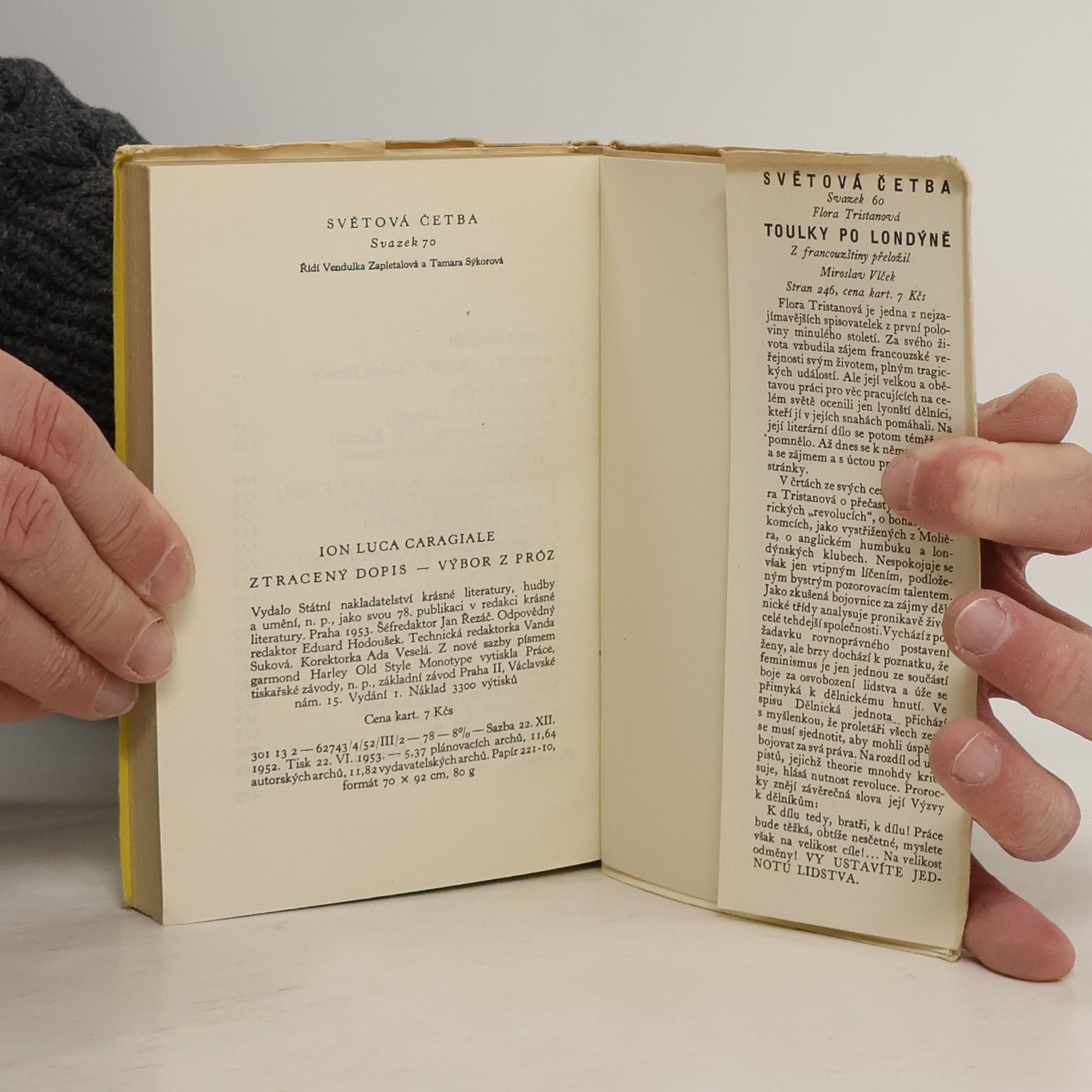 Výbor z díla klasika rumunské dramatické tvorby a zároveň i novely a společenského, satirického feuilletonu (1852-1912) je uveden jeho gogolovskou komedií "Ztracený dopis". Je to satira na t. zv. demokratické volby v Rumunsku v 2. pol. 19. stol. a na snahy o volební reformu. S charakterovou a situační komikou spojuje autor persiflující záměr - ukázat přízemní volební machinace maloměstské buržoasie, ohánějící se pokrokovými politickými hesly a užívající slov, jež komolí a jež hned prozradí její politické nedovzdělání. Jednající postavy mají i sugestivní jména (v novém překladu po prvé zčeštěná) - prefekt Krucipísek, advokát Žváček a Sejrovec, učitel a pokrokář Štírek a pod. - Dále přináší výbor 20 kratších próz s obdobnou thematikou, dokumentujících tehdejší zkorumpovaný organismus rumunské společnosti a její vývoj ke kapitalismu a šovinismu. (Podle J. Š. Kvapila.)