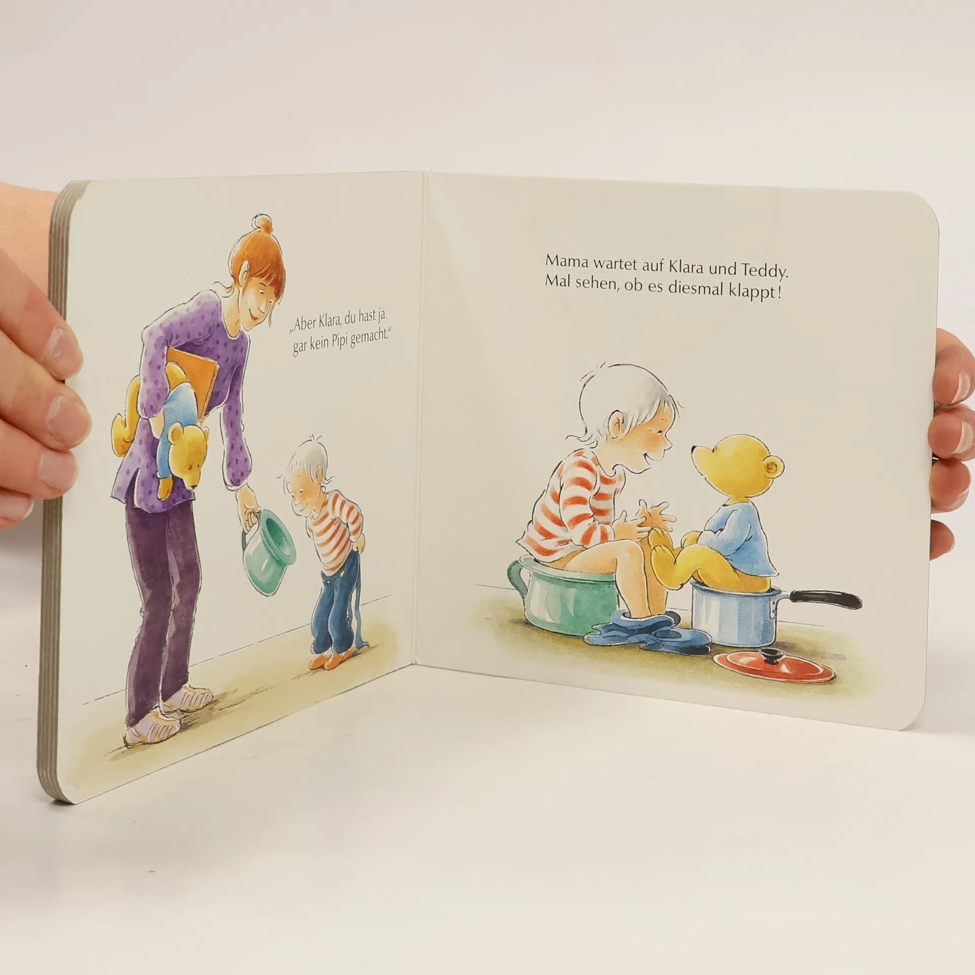 Klara und ihr Teddy müssen aufs Töpfchen. - Pappbilderbuch. (ab 2)