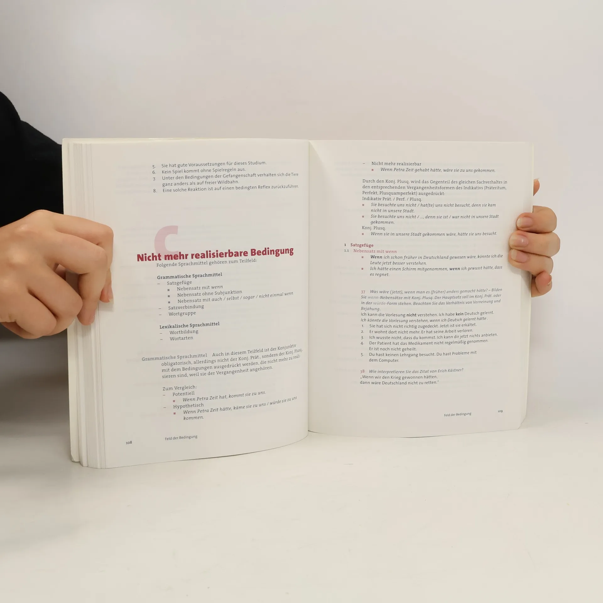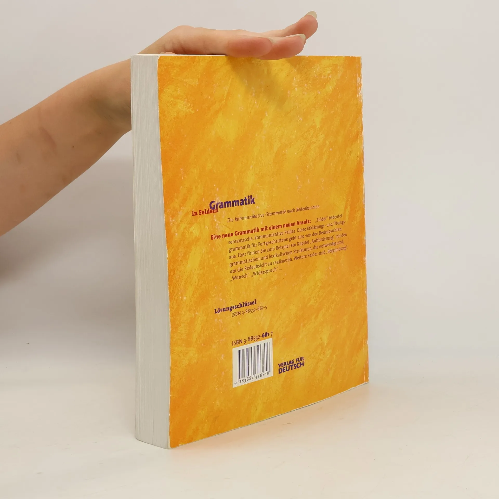 Für Fortgeschrittene Lerner in der Mittel- und Oberstufe. Lernziel: Die den kommunikativen Zielen adäquate Verwendung der Grammatik. Die Grammatik basiert auf einer neuen Konzeption, die sich an fortgeschrittene Lerner der Mittel- und Oberstufe wendet. Felder bedeutet hier semantische, kommunikative Felder. Diese Erklärungs- und Übungsgrammatik geht von den kommunikativen Zielen aus. Den semantischen Feldern werden die grammatischen Strukturen zugeordnet. Die Grammatik gliedert sich also z.B. in die Kapitel Person, Begründung, Bedingung, Absicht usw. Dort werden die grammatischen und lexikalischen Strukturen ausführlich in ihren morphologischen und semantischen Eigenschaften und in ihrer kommunikativen Verwendung beschrieben. Darauf folgen thematisch und situativ eingebettete Übungen. In Komplexübungen wird zum Abschluss das Erlernte in typischen Verwendungskontexten aktiv angewendet.