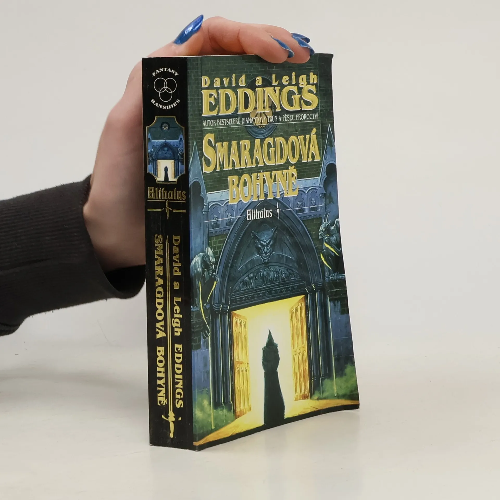 1. kniha série Althalus. Toto dílo mistra moderní fantasy Davida Eddingse – Althalus – se odehrává ve zbrusu novém, úžasném a kouzelném světě. Nejpřesvědčivější lhář na světě, ozbrojený lupič, příležitostný špičkový vrah a „oblíbenec boha štěsteny“ – Althalus – je tajemným cizincem v plášti jménem Ghend najat, aby ukradl tajuplnou knihu. Althalus se vydává do Domu na Konci Světa, kde se má kniha nacházet – ovšem, až poté, co Ghendův skvělý plášť změní majitele, aniž by to jeho vlastník tušil; koneckonců, blíží se zima. V Domě na Konci Světa, v místnosti, kde se nachází kniha, kterou Ghend popsal, zažívá Althalus velké překvapení. Něco je zde navíc – dominantní mluvící kočka – a neohrožený bojovník záhy zjišťuje, že jednu věc naopak postrádá – dveře, kterými se dostal do nekonečně rozlehlé a záhadné pevnosti jsou pryč… Přeložil Václav Čuba.