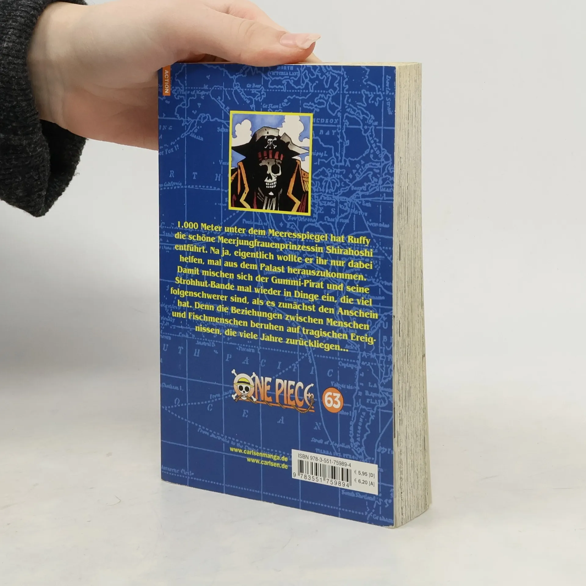 Der beliebteste Manga der Welt! Erlebe die Geschichte des zukünftigen Königs der Piraten in einer unvergleichlichen Geschichte voller Action, Abenteuer, Dramatik, Freundschaft und Humor. Mit über 500 Millionen verkauften Bänden weltweit ist One Piece die meistverkaufte Mangaserie der Geschichte! Das Abenteuer auf der Fischmenscheninsel geht weiter! 1.000 Meter unter dem Meeresspiegel hat Ruffy die schöne Meerjungfrauenprinzessin Shirahoshi entführt. Na ja, eigentlich wollte er ihr nur dabei helfen, mal aus dem Palast herauszukommen, der ihr zum Gefängnis geworden ist. Damit mischen sich der Gummi-Pirat und seine Strohhut-Bande mal wieder in Dinge ein, die viel folgenschwerer sind, als es zunächst den Anschein hat. Denn die Beziehungen zwischen Menschen und Fischmenschen beruhen auf tragischen Ereignissen, die viele Jahre zurückliegen. Und sie haben auf beiden Seiten Wunden geschlagen, die nicht so leicht zu heilen sind… Für Fans von Naruto, Dragon Ball, My Hero Academia und Fairy Tail!