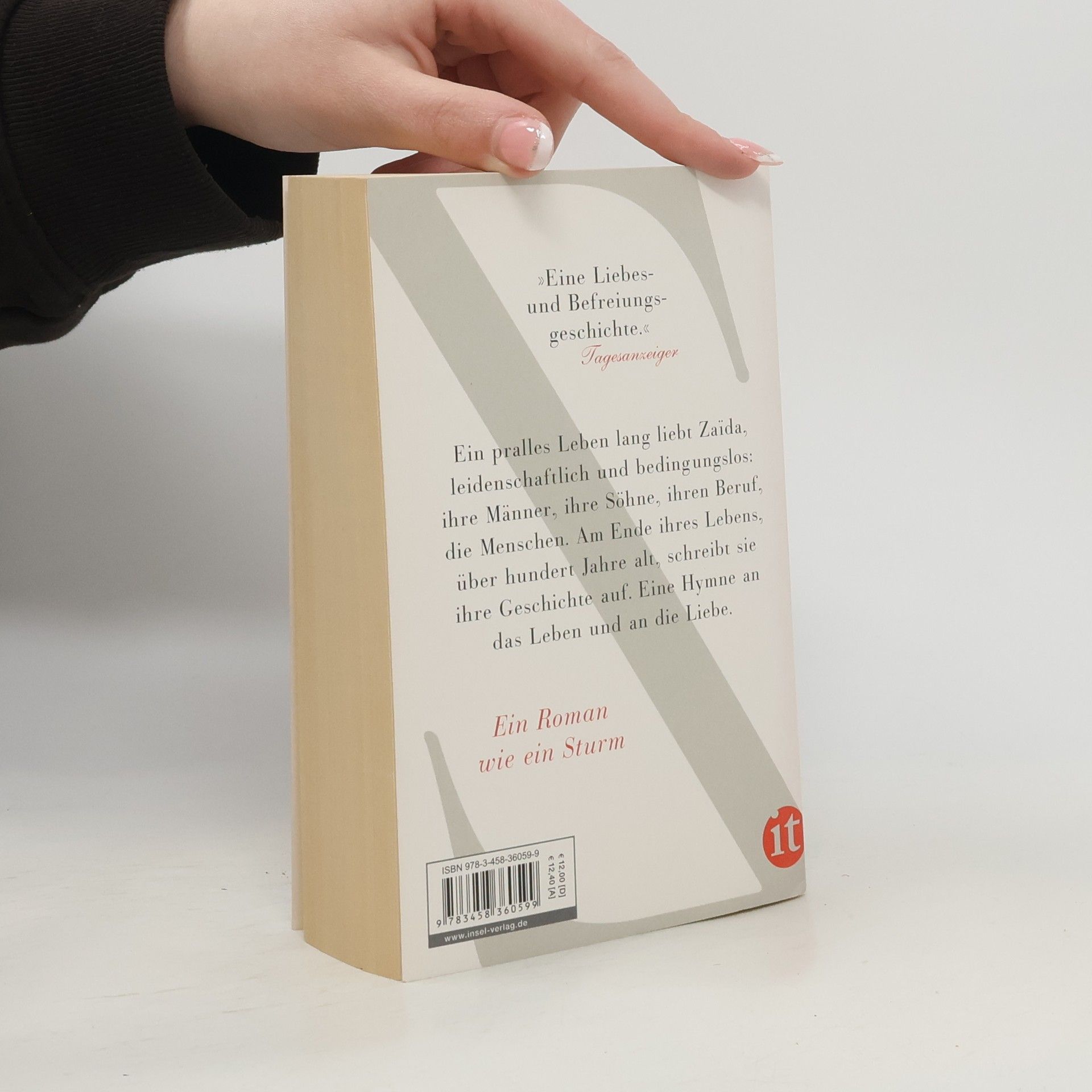 Zaïda de Vico ist eine außerordentliche Frau. Schön, abenteuerlustig, mutig, selbstbewusst, emanzipiert. 1859 in eine englische Adelsfamilie geboren, verstößt sie schon als junges Mädchen gegen alle Konventionen. Eine frühe Liebesheirat hält sie nicht davon ab, in Zürich Medizin zu studieren und ihren Beruf später in Florenz und Mailand mit großem Engagement auszuüben. Da ist sie bereits mit ihrem zweiten Mann und Vater ihrer zwei Söhne verheiratet. Mit ihrem dritten Mann – wie sie in der Resistenza gegen den Faschismus - flüchtet sie am Vorabend des Zweiten Weltkriegs nach Zürich, wo die beiden sich zu Psychoanalytikern ausbilden lassen, in der Überzeugung, sich damit für eine bessere Welt einzusetzen. Ein pralles Leben lang liebt Zaida, leidenschaftlich und bedingungslos: Ihre Männer, ihre Söhne, ihren Beruf, die Menschen. Am Ende ihres Lebens, über hundert Jahre alt, schreibt sie ihre Geschichte auf. Eine Hymne an das Leben und an die Liebe.