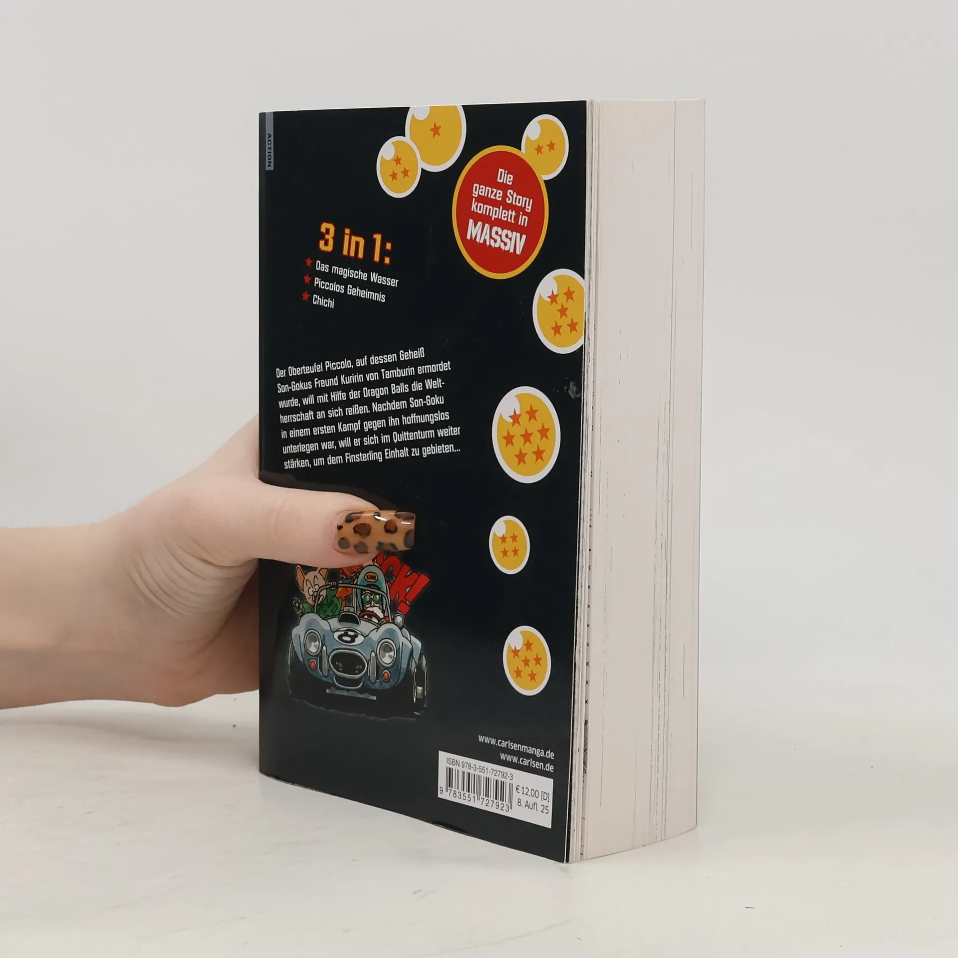 DRAGON BALL MASSIV ist die 3-in-1-Ausgabe des legendären Manga DRAGON BALL. Jeder der insgesamt 14 Sammelbände wird mit jeweils mehr als 500 Seiten drei Taschenbuchausgaben umfassen und erscheint mit neuen Covern. Mit der Neuedition zum Hammerpreis kann die Suche nach den sieben Dragon Balls wieder losgehen! Inhalt: Der Oberteufel Piccolo, auf dessen Geheiß Son-Gokus Freund Kuririn ermordet wurde, will mit Hilfe der Dragon Balls die Weltherrschaft an sich reißen. Nachdem Son-Goku in einem ersten Kampf gegen ihn hoffnungslos unterlegen war, will er sich im Quittenturm weiter stärken, um dem Finsterling Einhalt zu gebieten… Dieser Band enthält die Manga-Kapitel aus den Taschenbüchern 13, 14 und 15. Für Fans von Naruto, One Piece, My Hero Academia und Fairy Tail! Mehr Informationen: - Abgeschlossen in 14 Bänden