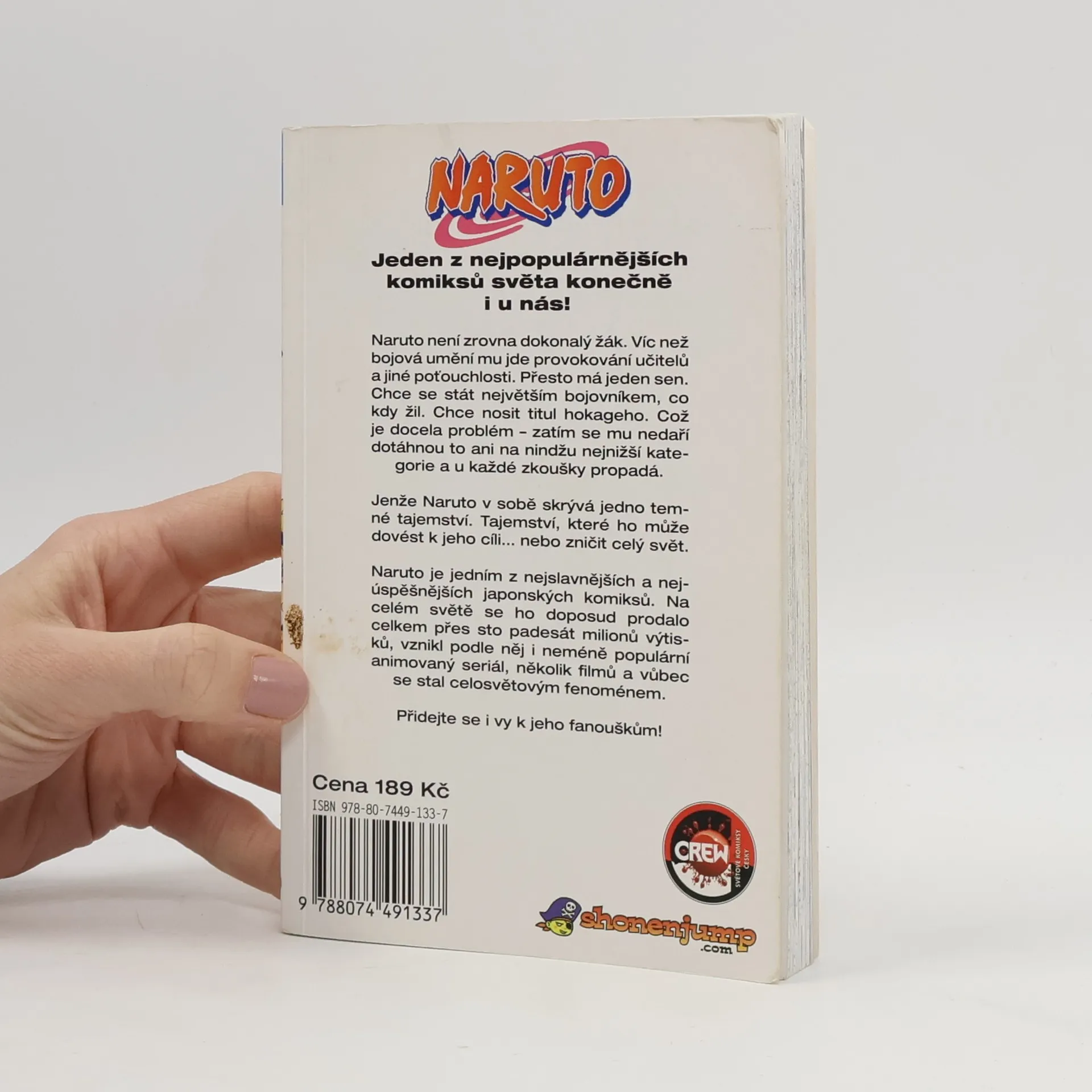 Jeden z nejpopulárnějších komiksů světa konečně i u nás! Naruto není zrovna dokonalý žák. Víc než bojová umění mu jde provokování učitelů a jiné poťouchlosti. Přesto má jeden sen. Chce se stát největší bojovníkem, co kdy žil. Chce nosit titul hokageho. Což je docela problém – zatím se mu nedaří dotáhnou to ani na nindžu nejnižší kategorie a u každé zkoušky propadá. Jenže Naruto v sobě skrývá jedno temné tajemství. Tajemství, které ho může dovést k jeho cíli... nebo zničit celý svět. Naruto je jeden z nejslavnějších a nejúspěšnějších japonských komiksů. V zemi vycházejícího slunce se ho doposud prodalo celkem už více než 100 milionů výtisků, vznikl podle něj i neméně populární animovaný seriál, několik filmů a vůbec se stal