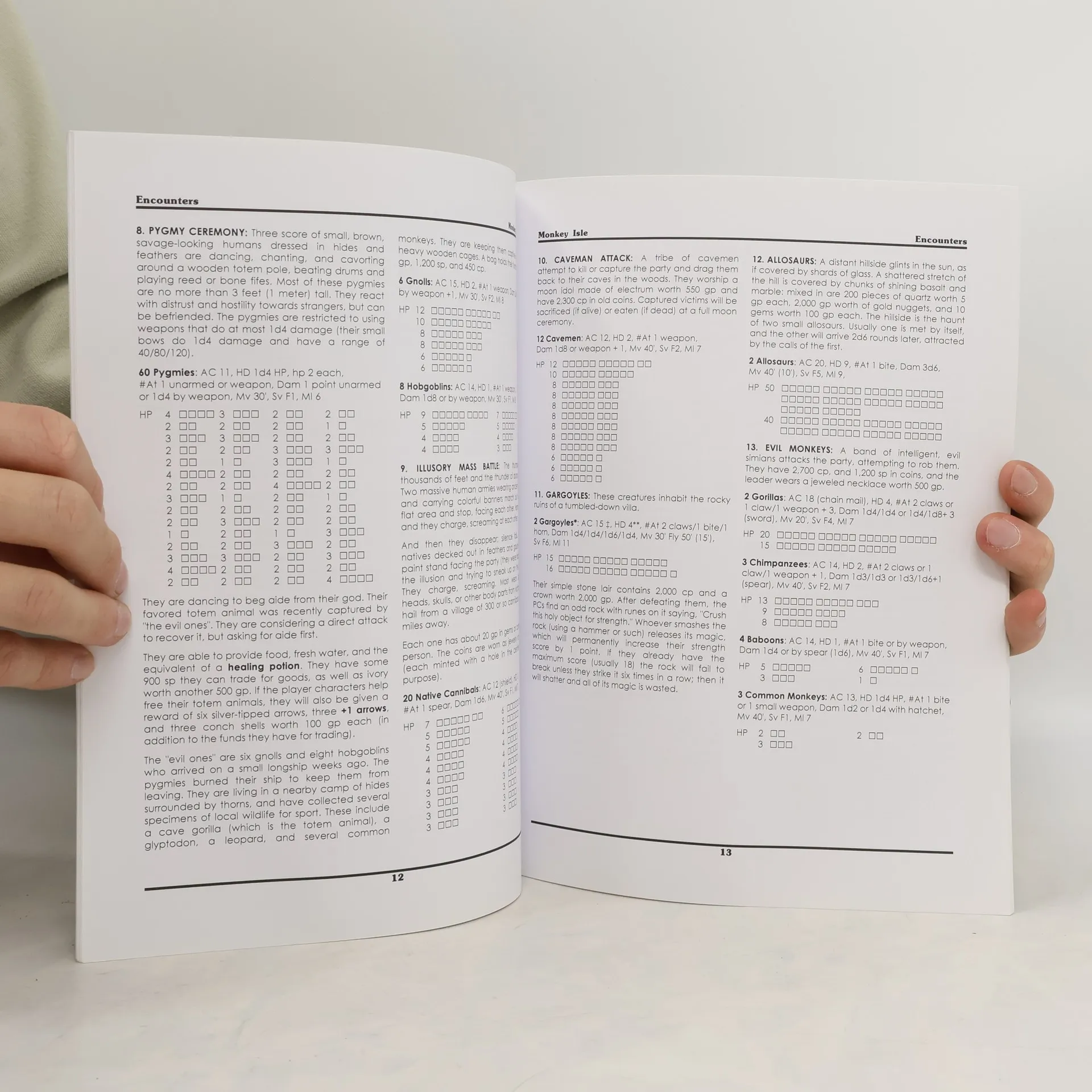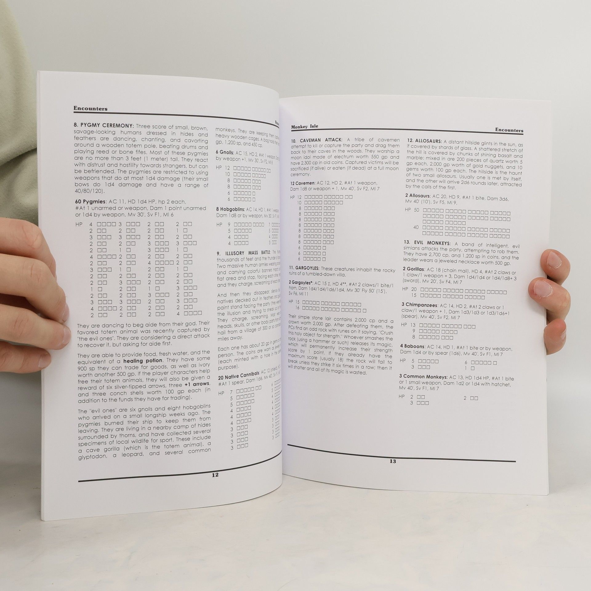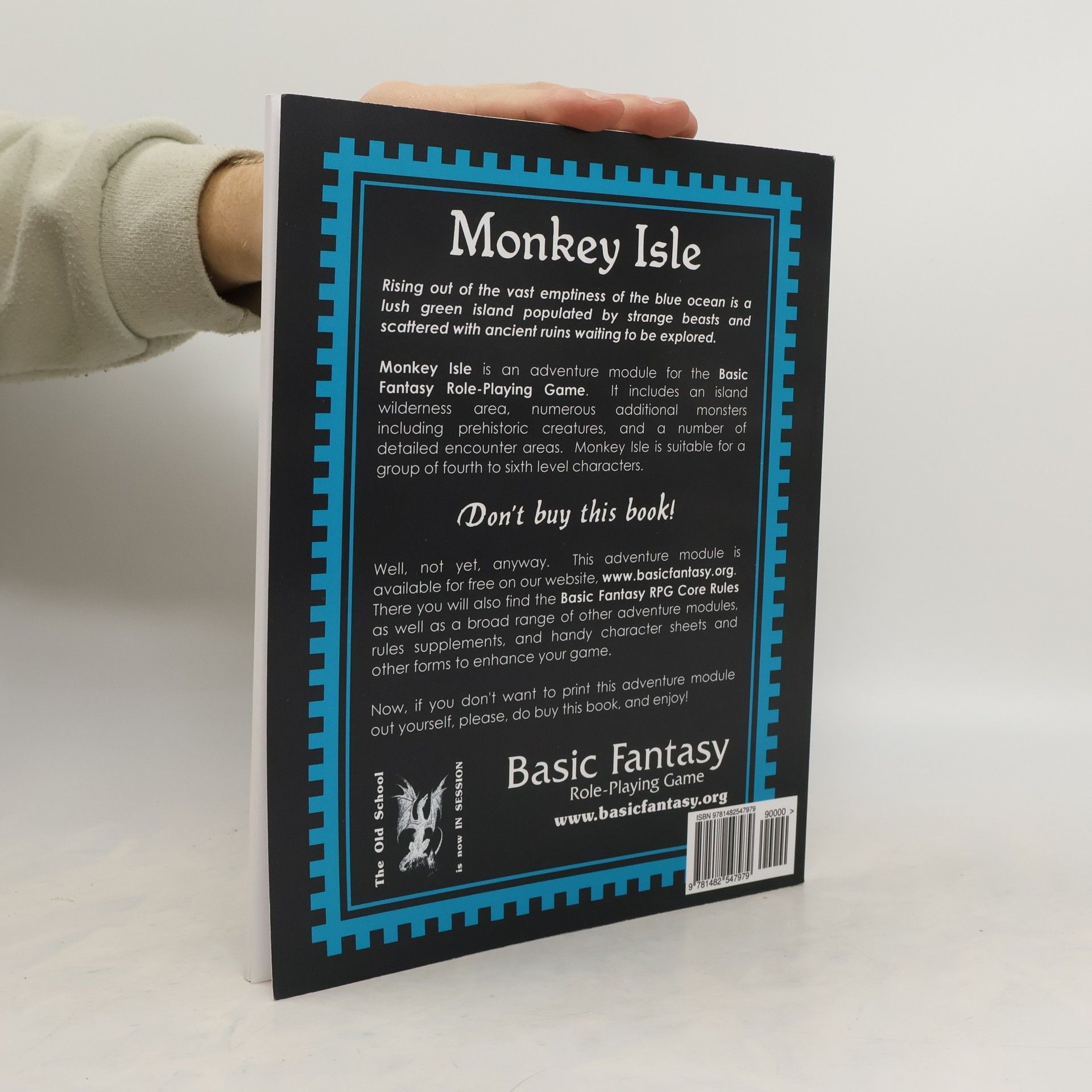 Rising out of the vast emptiness of the blue ocean is a lush green island filled with ancient beasts and scattered strange ruins waiting to be explored. Monkey Isle is an adventure module for the Basic Fantasy Role-Playing Game. It includes a map of the island, numerous adventure locations (both wilderness and dungeon), and an extensive section detailing new monsters for the game. Monkey Isle is suitable for a group of fourth to sixth level characters,