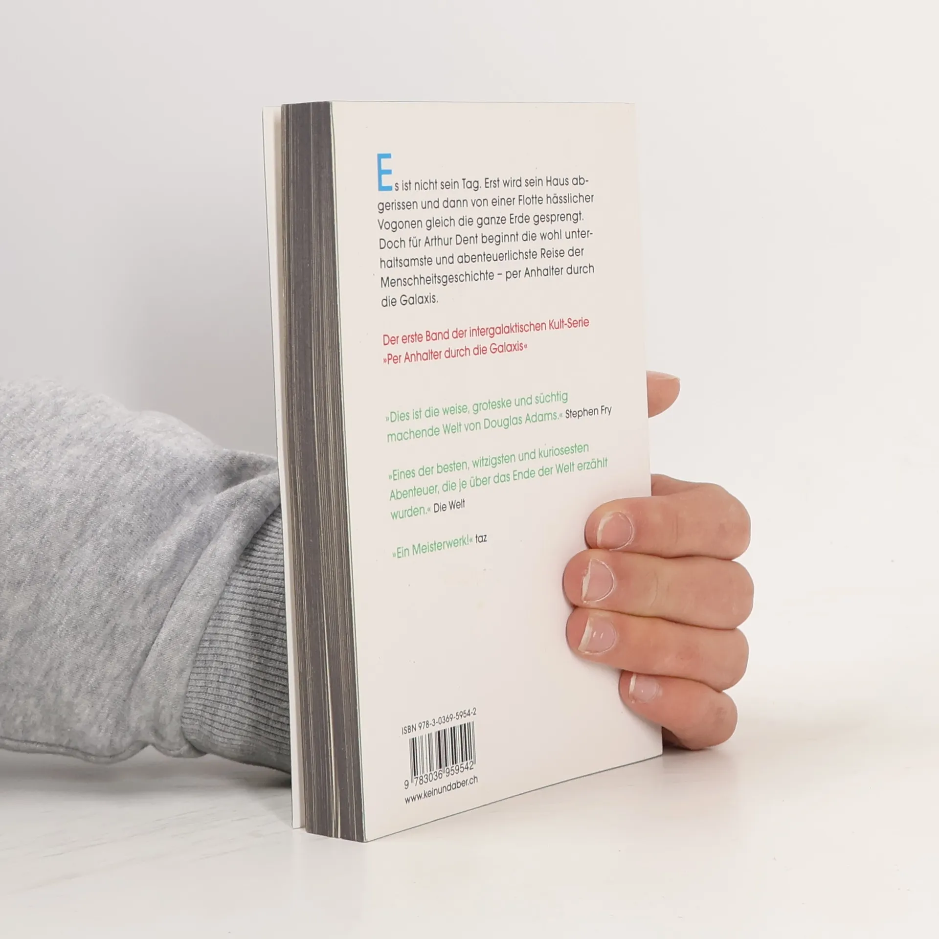 Eines normalen Tages erfährt Arthur Dent zufällig, dass die Zerstörung der Erde unmittelbar bevorsteht: Sie soll einer Hyperraumumgehungsstraße weichen. Zum Glück entpuppt sich sein bester Freund als Außerirdischer, der sie per Anhalter auf ein Raumschiff schleust und so rettet. Zumindest erst mal. Denn bevor sie die Antwort auf die Frage nach dem Leben, dem Universum und dem ganzen Rest erfahren, müssen sie gemeinsam mit dem debilen Präsidenten der Galaxis und einem schwermütigen Roboter den unwahrscheinlichsten Planeten überleben, den es je gab. Der erste Band der intergalaktischen Kult-Serie „Per Anhalter durch die Galaxis“.