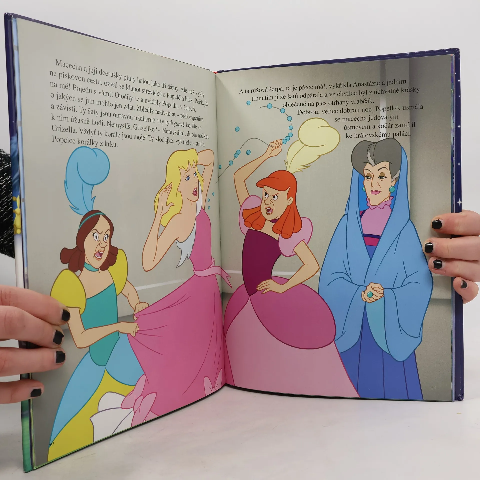 Bylo jednou jedno malé království, které na jaře kvetlo a celý rok vzkvétalo. A přímo uprostřed království stál starý venkovský zámek. Žil v něm tatínek s malou dcerkou, která se jmenovala Popelka. Neměla maminku, a tak se tatínek rozhodl, že pro ni nějakou najde. Rozhlížel se po dobrých rodinách a opravdu si vybral. Vzal si jistou lady Tremaine se dvěma dcerami Anastázií a Grizellou a zdálo se, že zámek bude pro všechny domem plným štěstí. Ale nebyl. Jednoho podzimního dne ztratila Popella i tatínka a její druhá maminka z dobré rodiny se přes noc proměnila v chladnou a zlou macechu. A jak to bylo dál? To vám prozradí tahle knížka!