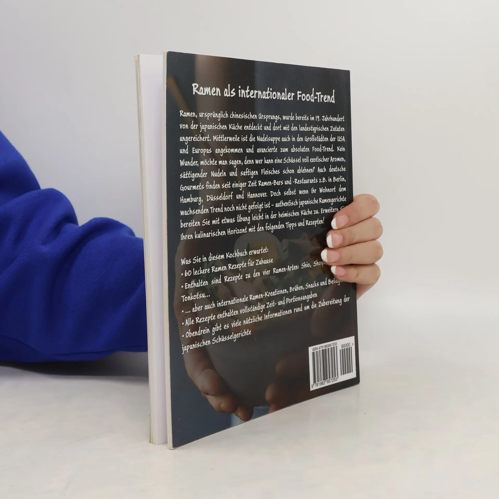 Ramen als internationaler Food-Trend Ramen, urspr�nglich chinesischen Ursprungs, wurde bereits im 19. Jahrhundert von der japanischen K�che entdeckt und dort mit den landestypischen Zutaten angereichert. Mittlerweile ist die Nudelsuppe auch in den Gro�st�dten der USA und Europas angekommen und avancierte zum absoluten Food-Trend. Kein Wunder, m�chte man sagen, denn wer kann eine Sch�ssel voll exotischer Aromen, s�ttigender Nudeln und saftigen Fleisches schon ablehnen? Auch deutsche Gourmets finden seit einiger Zeit Ramen-Bars und -Restaurants z.B. in Berlin, Hamburg, D�sseldorf und Hannover. Doch selbst wenn Ihr Wohnort dem wachsenden Trend noch nicht gefolgt ist - authentisch japanische Ramengerichte bereiten Sie mit etwas �bung leicht in der heimischen K�che zu. Erweitern Sie Ihren kulinarischen Horizont mit den folgenden Tipps und Rezepten! Was Sie in diesem Kochbuch erwartet: 60 leckere Ramen Rezepte f�r Zuhause Enthalten sind Rezepte zu den vier Ramen-Arten: Shio, Shoyu, Miso und Tonkotsu... ... aber auch internationale Ramen-Kreationen, Br�hen, Snacks und Beilagen Alle Rezepte enthalten vollst�ndige Zeit- und Portionsangaben Obendrein gibt es viele n�tzliche Informationen rund um die Zubereitung der japanischen Sch�sselgerichte Kaufen Sie sich jetzt das Buch Ramen Kochbuch - Japanisch kochen f�r Zuhause und lernen Sie noch heute wie man k�stliche Ramen in der heimischen K�che zubereiten kann!