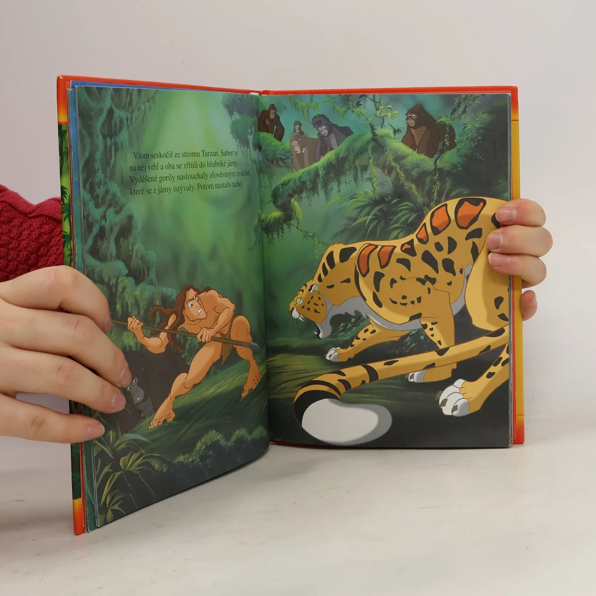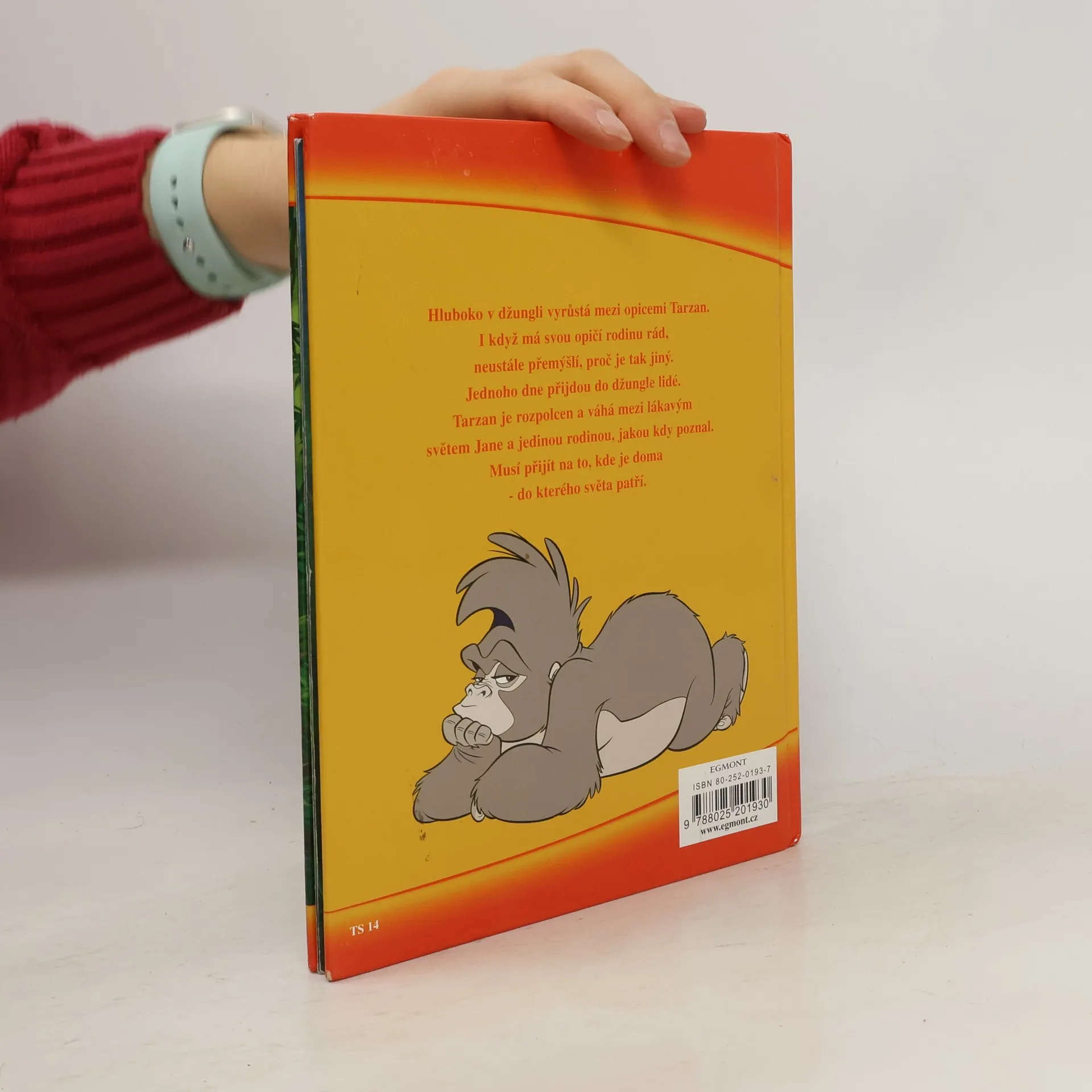 Známý román E. R. Burroughse - příběh Tarzana, muže, jehož odchovaly opice v africké džungli. Převyprávění od Svatopluka Hrnčíře určené starším dětem a mládeži. Rozsahem odpovídá prvnímu dílu. Napínavý a dobrodružný příběh osiřelého chlapce, kterého se ujme kmen opic. Z Tarzana záhy vyroste mrštný král džungle, před kterým se mají všichni na pozoru. Náhodou se naučí rozeznávat písmena, používat nůž a nakonec se setkává i s lidmi a civilizací. - Na konci je připojen obsáhlý životopis E. R. Burroughse. Knihu doprovází ilustrace Z. Buriana.
