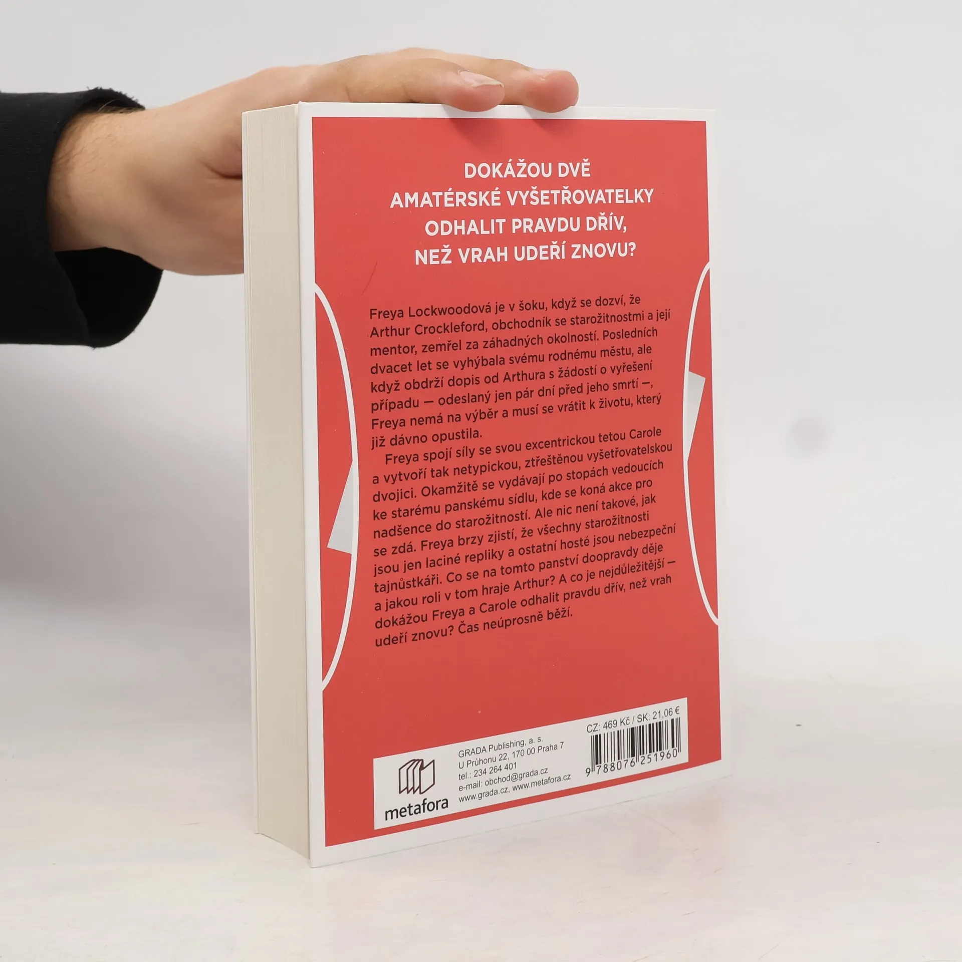 Freya Lockwoodová je v šoku, když se dozví, že Arthur Crockleford, obchodník se starožitnostmi a její mentor, zemřel za záhadných okolností. Posledních dvacet let se vyhýbala svému rodnému městu, ale když obdrží dopis od Arthura s žádostí o vyřešení případu – odeslaný jen pár dní před jeho smrtí –, Freya nemá na výběr a musí se vrátit k životu, který již dávno opustila. Freya spojí síly se svou excentrickou tetou Carole a vytvoří tak netypickou, ztřeštěnou vyšetřovatelskou dvojici. Okamžitě se vydávají po stopách vedoucích ke starému panskému sídlu, kde se koná akce pro nadšence do starožitností. Ale nic není takové, jak se zdá. Freya brzy zjistí, že všechny starožitnosti jsou jen laciné repliky a ostatní hosté jsou nebezpeční tajnůstkáři. Co se na tomto panství doopravdy děje a jakou roli v tom hraje Arthur? A co je nejdůležitější – dokážou Freya a Carole odhalit pravdu dřív, než vrah udeří znovu? Čas neúprosně běží.