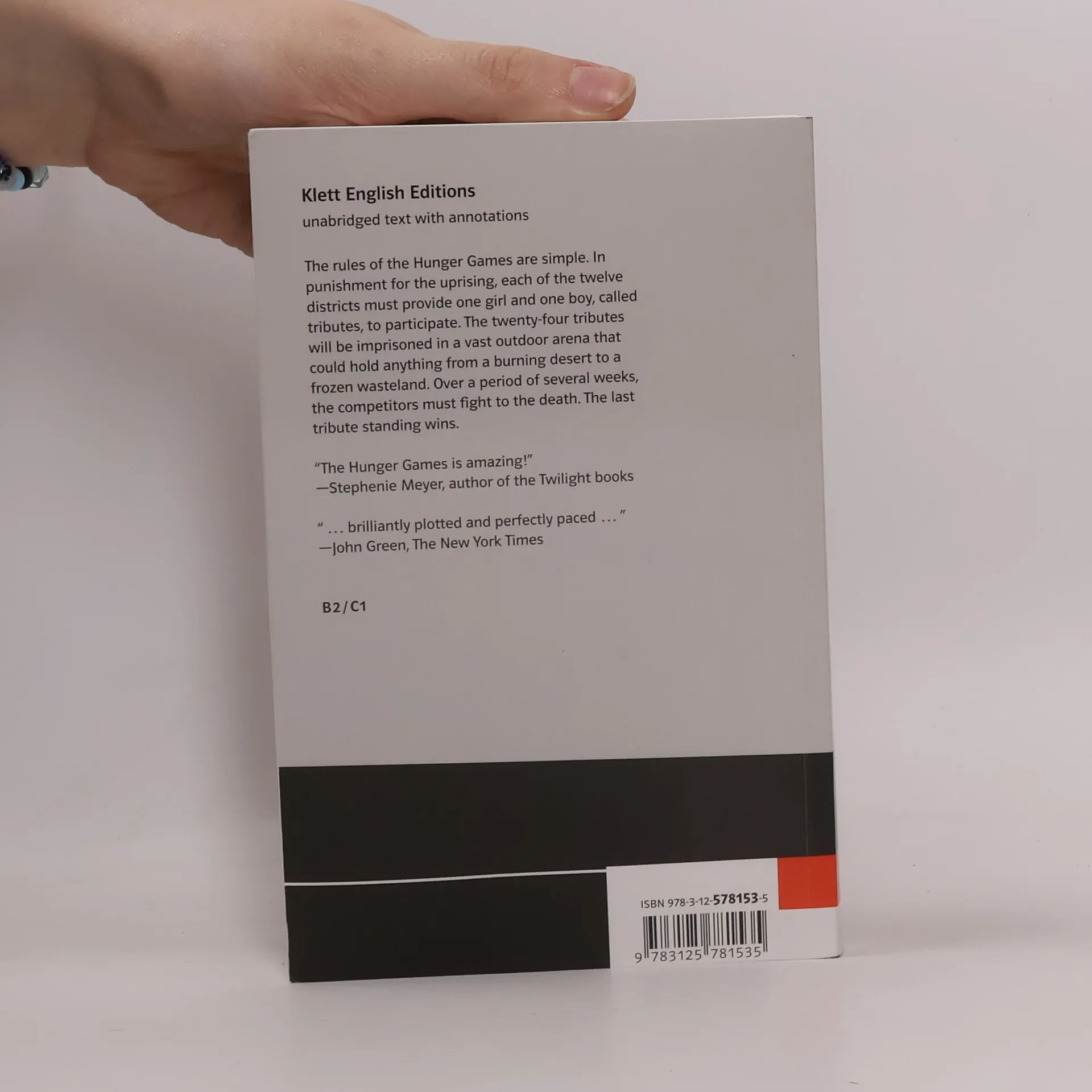 In den Ruinen des ehemaligen Nordamerika liegt die Nation Panem, eine schillernde Hauptstadt umgeben von zwölf Außenbezirken. Um diese Bezirke unter Kontrolle zu halten, zwingt man sie, jährlich einen Jungen und ein Mädchen zwischen 12 und 18 auszuwählen - um live im Fernsehen auf Leben und Tod gegeneinander zu kämpfen. Als die 16-jährige Katniss Everdeen den Platz ihrer Schwester im Wettkampf einnimmt, hält sie das zunächst für ein Todesurteil. Aber Katniss ist dem Tod schon oft begegnet und noch immer entkommen. Doch wenn sie gewinnen und überleben möchte, wird sie schwierige Entscheidungen treffen müssen: Überleben oder Menschlichkeit? Leben oder Liebe? Abiturempfehlung zu den Themenbereichen Utopia, Dystopia und Media and Society
