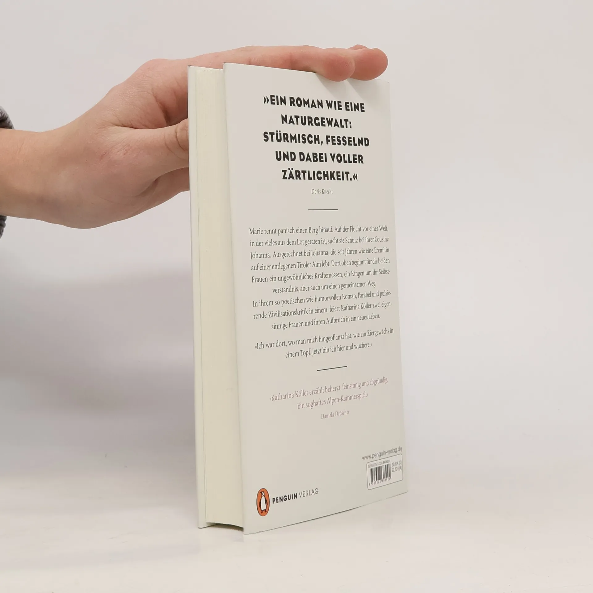 »Katharina Köller erzählt beherzt, feinsinnig und abgründig. Ein soghaftes Alpen-Kammerspiel.« Daniela Dröscher Marie rennt panisch einen Berg hinauf. Auf der Flucht vor einer Welt, in der vieles aus dem Lot geraten ist, sucht sie Schutz bei ihrer Cousine Johanna. Ausgerechnet bei Johanna, die seit Jahren wie eine Eremitin auf einer entlegenen Tiroler Alm lebt. Marie und Johanna, sie könnten nicht unterschiedlicher sein: die scharfzüngige Wienerin, Luxusgeschöpf aus einer Luxuswelt, zugleich verwöhnt und verachtet von Ehemann Peter – und das »wilde Tier im Körper von einem Menschen« (Marie über Johanna), das beim Erwachsenwerden scheinbar die Sprache verloren und die Gesellschaft hinter sich gelassen hat. Für die beiden Frauen beginnt ein ungewöhnliches Kräftemessen, ein Ringen um ihr Selbstverständnis, aber auch um einen gemeinsamen Weg. In ihrem so poetischen wie politischen Roman, Märchen, Parabel und pulsierende Zivilisationskritik in einem, feiert Katharina Köller zwei Frauen und ihren eigensinnigen Aufbruch ins Leben. »Ich war dort, wo man mich hingepflanzt hat, wie ein Ziergewächs in einem Topf. Jetzt bin ich hier und wuchere.« »Kann man noch weiblicher, noch österreichischer, noch besser schreiben? Ich denke nicht!« Mareike Fallwickl