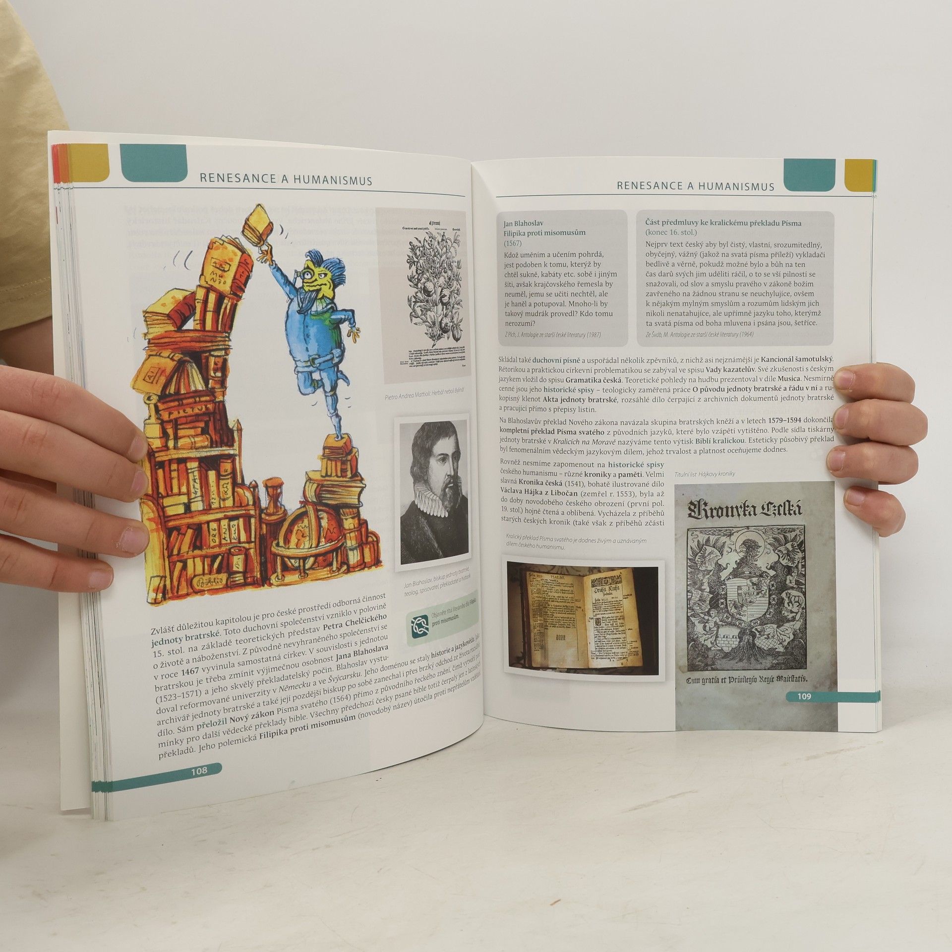 Od hieroglyfů ke kalamáři aneb Od starověku k osvícenství Celobarevná učebnice přináší pohled na literaturu z hlediska literárních i mimoliterárních souvislostí. Obsahuje základy literární historie, teorie a kritiky, kulturní a společenský přehled, informace o dobových skutečnostech, autorech a jejich tvorbě, poukazuje na žánrovou a tematickou pestrost. Výkladová část je doprovázena bohatým poznámkovým aparátem (doplňující údaje, vysvětlivky, mezipředmětové vztahy, rozšiřující otázky a úkoly, studijní a čtenářské tipy, náměty na další práci) i ukázkami ze stěžejních děl či odborné literatury. K přehlednosti přispívá grafická úprava se systémem orientačních piktogramů. Učebnice zachovává chronologickou linii s přesahy do jiných období. Je úzce propojena s elektronickou čítankou.