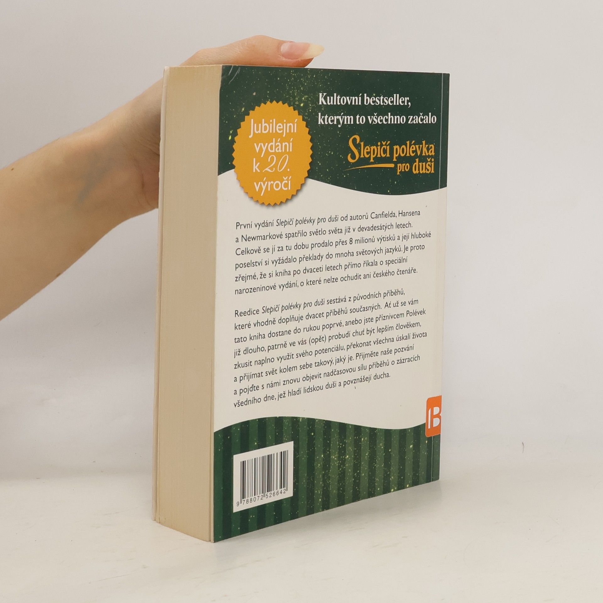 První vydání Slepičí polévky pro duši od autorů Canfielda, Hansena a Newmarkové spatřilo světlo světa již v devadesátých letech. Celkově se jí za tu dobu prodalo přes 8 milionu výtisků a její hluboké poselství si vyžádalo překlady do mnoha světových jazyků. Je proto zřejmé, že si kniha po dvaceti letech přímo říkala o speciální narozeninové vydání, o které nelze ochudit ani českého čtenáře. Reedice Slepičí polévky pro duši sestává z původních příběhů, které vhodně doplňuje dvacet příběhů současných. Ať už se vám tato kniha dostane do rukou poprvé, anebo jste příznivcem Polévek již dlouho, patrně ve vás (opět) probudí chuť být lepším člověkem, zkusit naplno využít svého potenciálu, překonat všechna úskalí života a přijímat svět kolem sebe takový, jaký je. Přijměte naše pozvání a pojďte s námi znovu objevit nadčasovou sílu příběhů o zázracích všedního dne, jež hladí lidskou duši a povznášejí ducha.