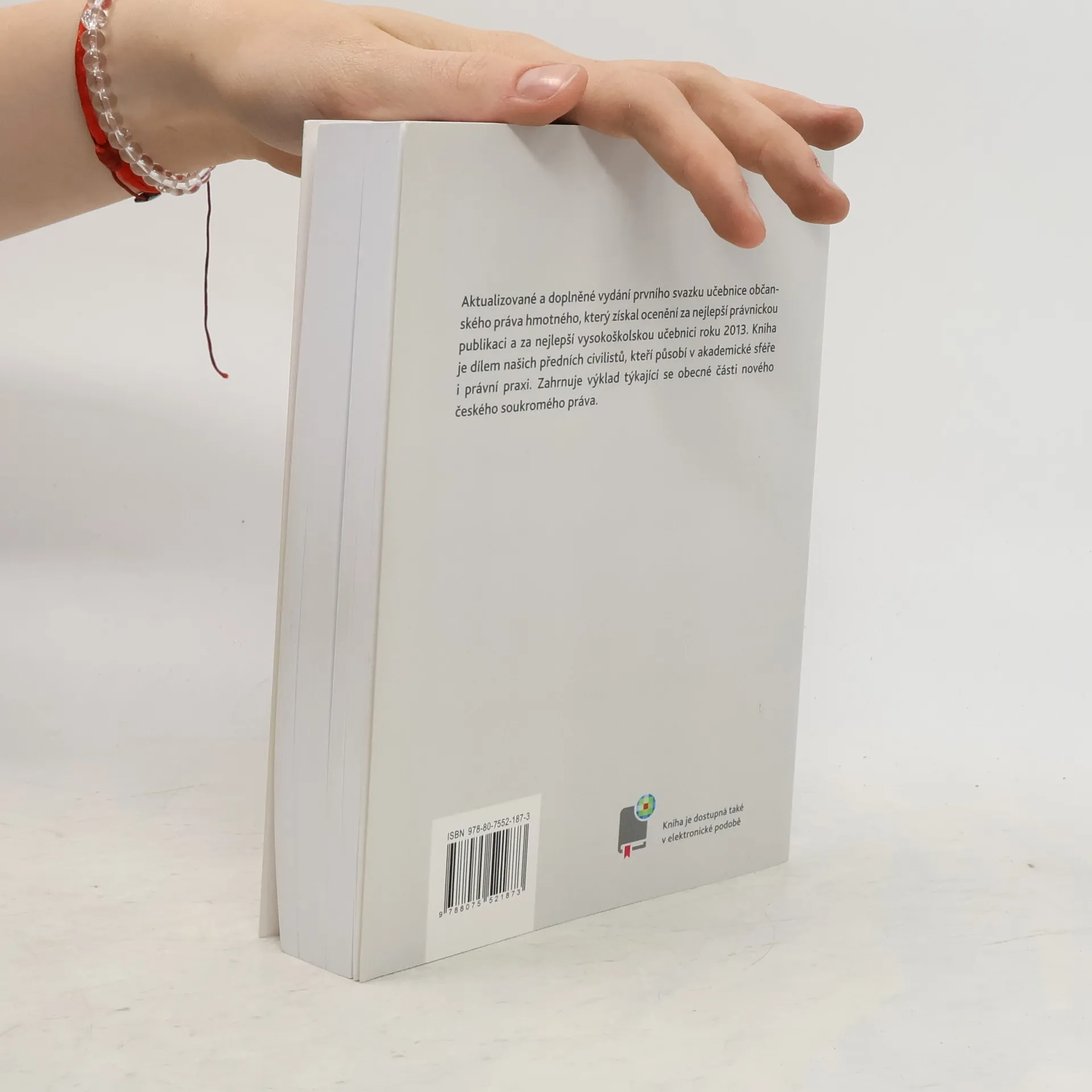 Aktualizované a doplněné vydání prvního svazku učebnice občanského práva hmotného, který získal ocenění za nejlepší právnickou publikaci a za nejlepší vysokoškolskou učebnici roku 2013. Kniha je dílem našich předních civilistů, kteří působí v akademické sféře i právní praxi. Zahrnuje výklad týkající se obecné části nového českého soukromého práva.