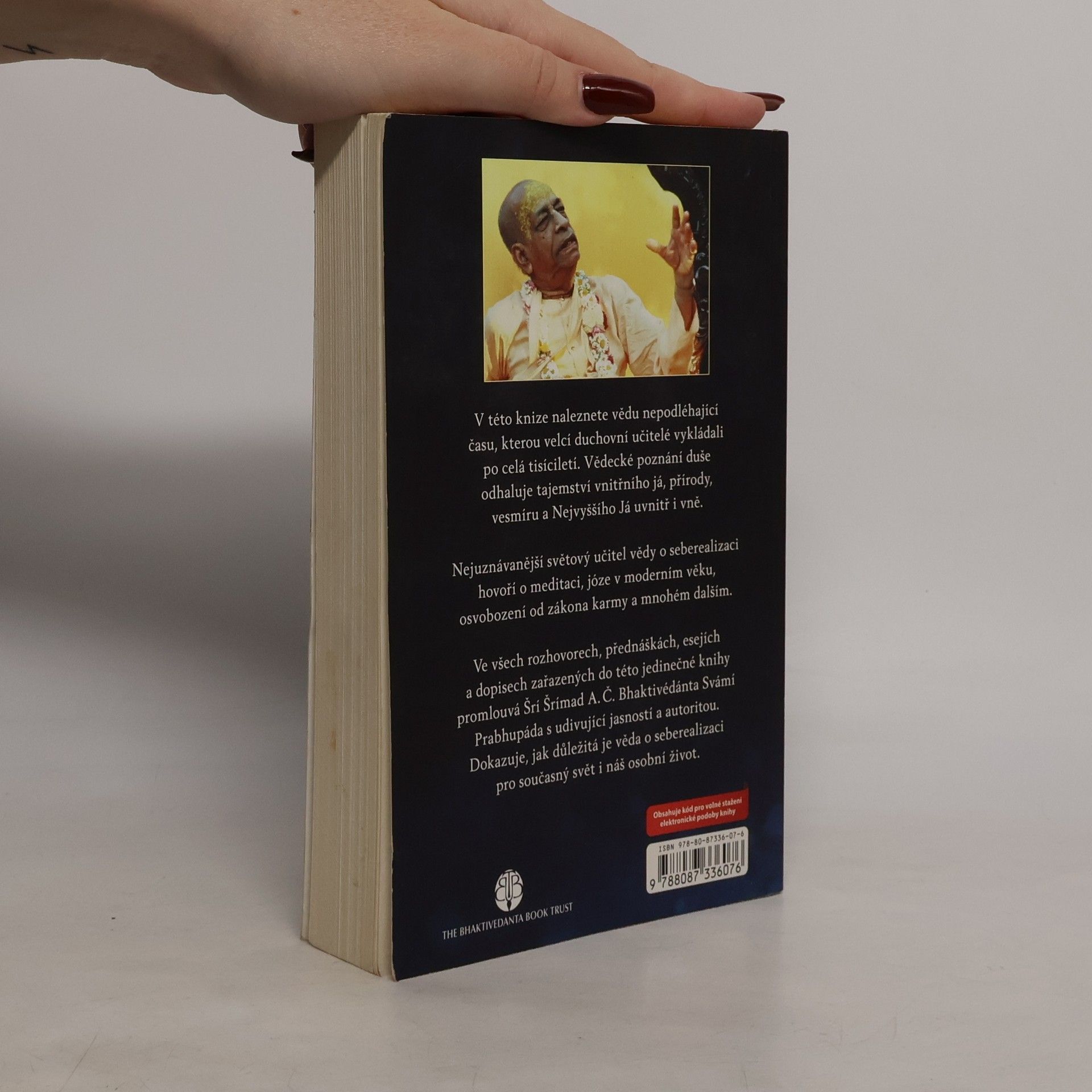 Druhé, rozšířené vydání Transcendentální poznání o duši v autorizovaném vědeckém podání Šríly Prabhupády. Kniha vysvětluje jógu, karmu, převtělování apod. Kniha "Vědecké poznání duše" je sice určena především pro zájemce o indické náboženství (vaišnavismus), neboť jejímautorem je proslulý zakladatel hnutí "Hare Krišna". To však nic nemění na tom, že texty z této knihy lze použít i k obecnému zamyšlení nad smyslem náboženství a nad existencí života a Boha. Tak co si myslíte? Existuje Bůh?