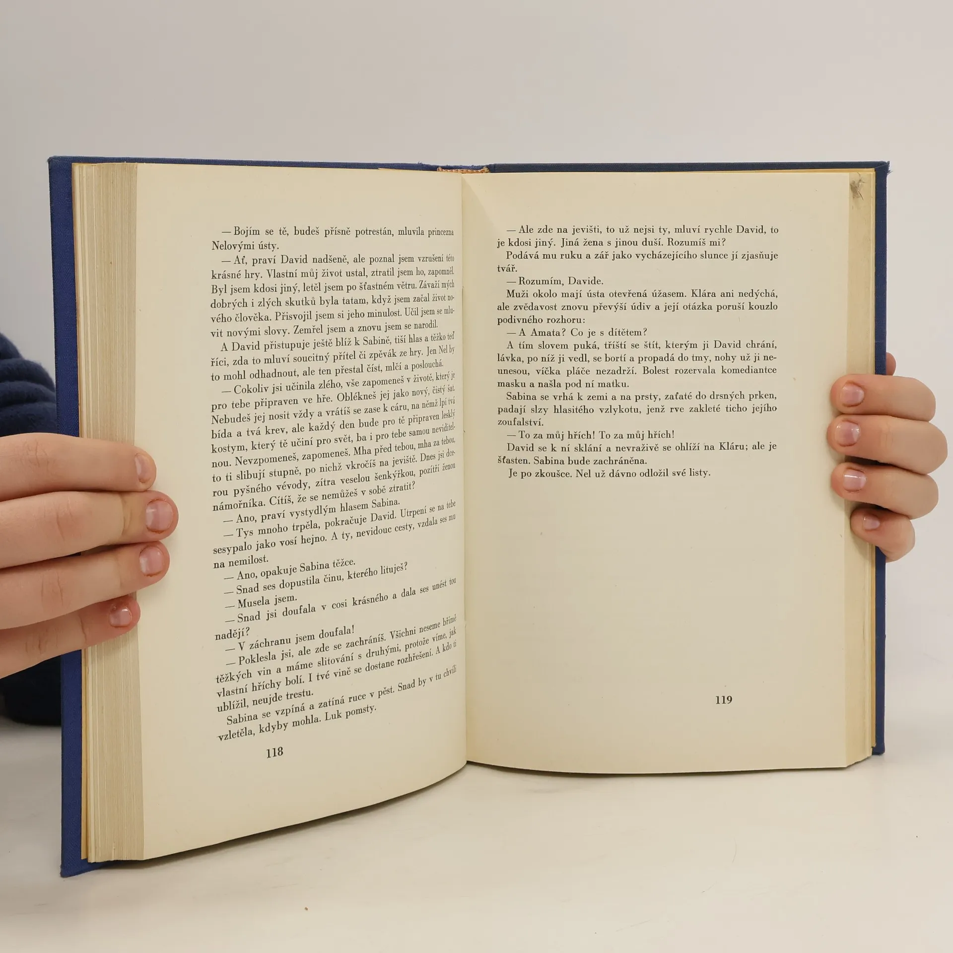 Temný středověk - tlupa komediantů se stala obětí pletichářské a kruté hry obávaného jezuity a podlého šlechtice. Oba muži zneužili krásu vnadné Sabiny, označili ji za kacířku a čarodějnici. Nešťastnice má své hříchy ze sebe očistit v ohni, zažehnutém svatou inkvizicí. Jak mají ostatní potulní herci zachránit krásnou ženu ze spárů nelítostného zla. Umí jen hrát divadlo… Novela skvělého vypravěče nás zavede do doby krutých procesů s kacíři a ukáže nám hrůznost doby i sílu lásky, přátelství a nenávisti.