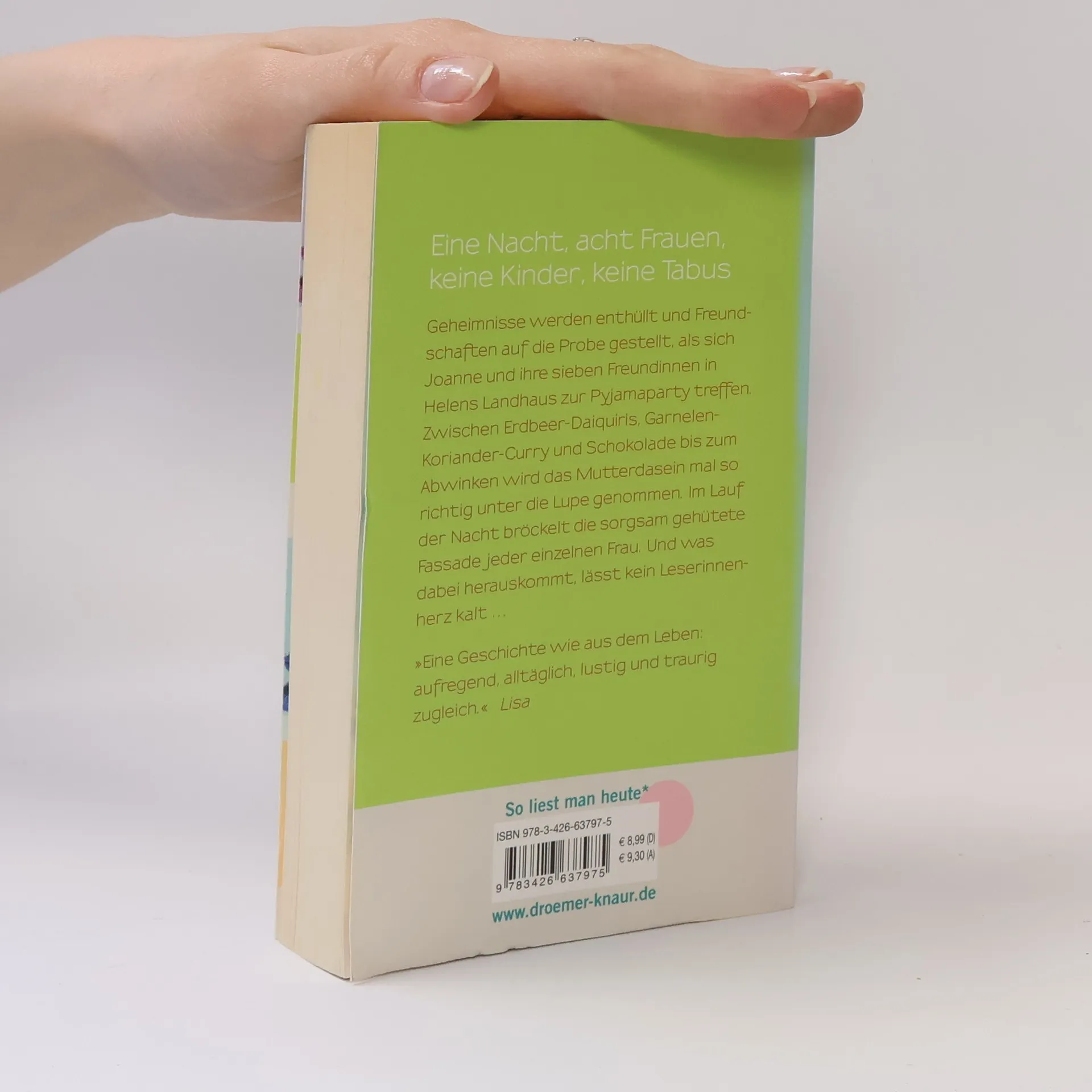 Geheimnisse werden enthüllt und Freundschaften auf die Probe gestellt, -als sich Joanne und ihre sieben Freundinnen in Helens Landhaus zur Pyjamaparty treffen. Zwischen Erdbeer-Daiquiris, Garnelen-Koriander-Curry und Schokolade bis zum Abwinken wird das Muttersein mal so richtig unter die Lupe -genommen. Im Lauf der Nacht bröckelt die sorgsam gehütete Fassade jeder einzelnen Frau. Und was dabei herauskommt, lässt kein Leserinnenherz kalt …