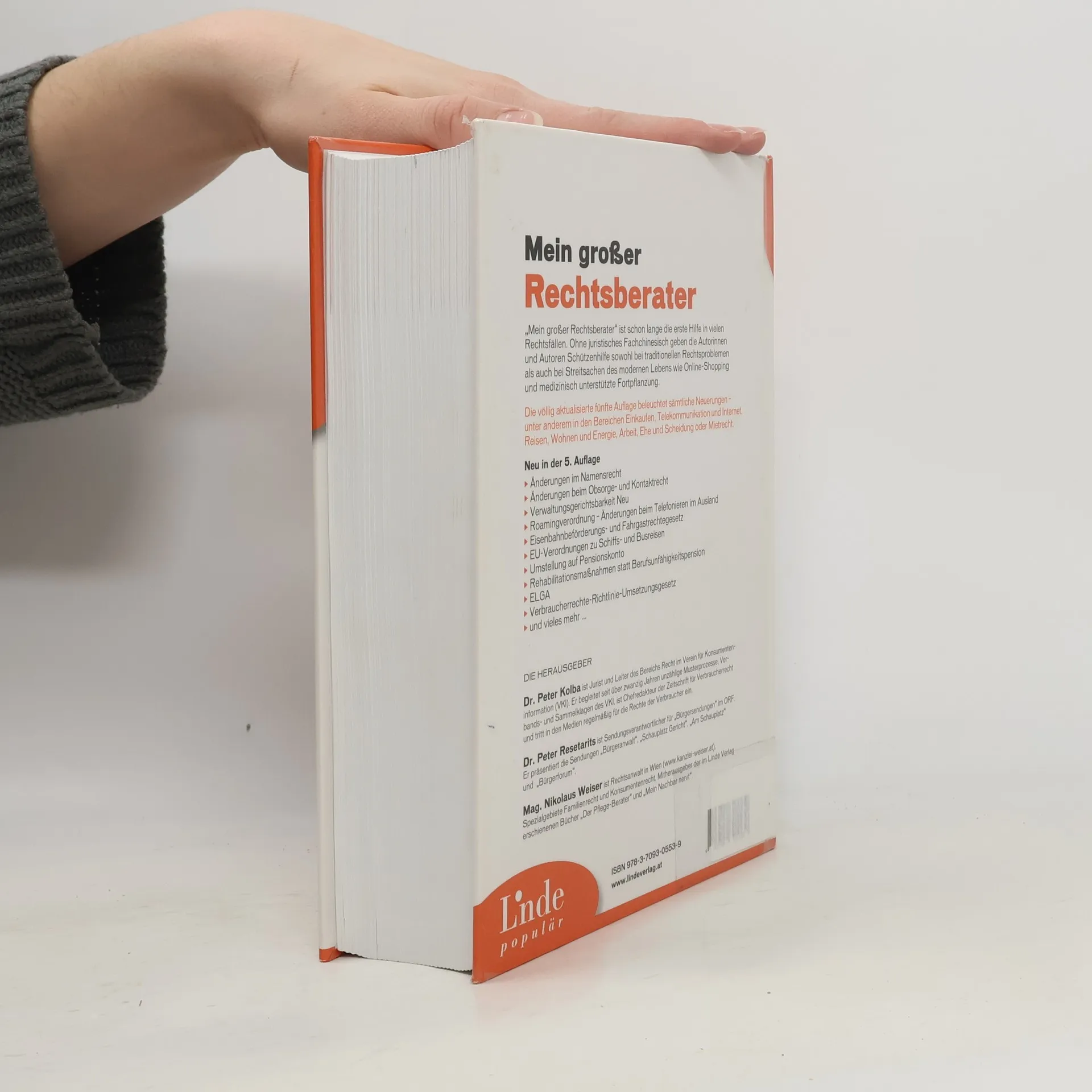 Wesentlich aktualisiert in der 5. Auflage ”Mein großer Rechtsberater“ ist schon lange die erste Hilfe in vielen Rechtsfällen. Ohne juristisches Fachchinesisch geben die Autoren Schützenhilfe sowohl bei traditionellen Rechtsproblemen als auch bei Streitsachen des modernen Lebens wie Online-Shopping und medizinisch unterstützte Fortpflanzung. Die völlig aktualisierte fünfte Auflage beleuchtet sämtliche Neuerungen – unter anderem in den Bereichen Einkaufen, Telekommunikation und Internet, Reisen, Wohnen und Energie, Arbeit, Ehe und Scheidung oder Mietrecht. U. a. neu in der 5. Auflage: Änderungen im Namensrecht Änderungen beim Obsorge- und Kontaktrecht Verwaltungsgerichtsbarkeit Neu Roamingverordnung – Änderungen beim Telefonieren im Ausland Eisenbahnbeförderungs- und Fahrgastrechtegesetz EU-Verordnungen zu Schiffs- und Busreisen Umstellung auf Pensionskonto Rehabilitationsmaßnahmen statt Berufsunfähigkeitspension ELGA ORF TV Spot: Video ansehen Zu YouTube wechseln