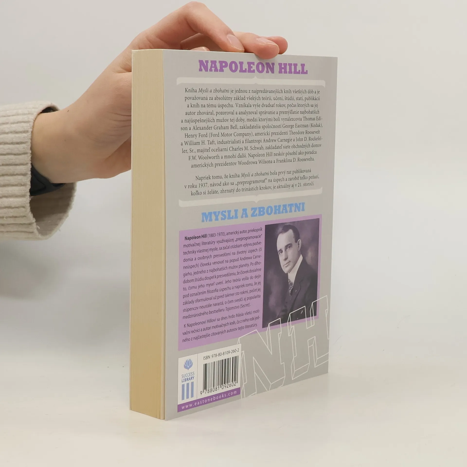 Kniha Mysli a zbohatni je jednou z najpredávanejších kníh všetkých dôb a je považovaná za absolútny základ všekých teórií, učení, štúdií, statí, publikácií a kníh na tému úspechu. Vznikala vyše dvadsať rokov, počas ktorých sa jej autor zhováral, pozoroval a analyzoval správanie a premýšľanie najbohatších a najúspešnejších mužov tej doby, medzi ktorými boli vynálezcovia Thomas Edison a Alexander Graham Bell, zakladatelia spoločností George Eastman (Kodak), Henry Ford (Ford Motor Company), americkí prezidenti Theodore Roosevelt a William H. Taft, industrialisti a filantropi Andrew Carneg ie a John D. Rockefe ller, Sr., majiteľ oceliarní Charles M. Schwab, zakladateľ siete obchodných domovF.W. Woolworth a mnohí ďalší. Napoleon Hill neskôr pôsobil ako poradca amerických prezidentov Woodrowa Wilsona a Franklina D. Roosevelta. Napriek tomu, že kniha Mysli a zbohatni bola prvý raz publikovaná v roku 1937, návod, ako sa „preprogramovať“ na úspech a zarobiť toľko peňazí, koľko si želáte, zhrnutý do trinástich krokov, je aktuálny aj v 21. storočí.