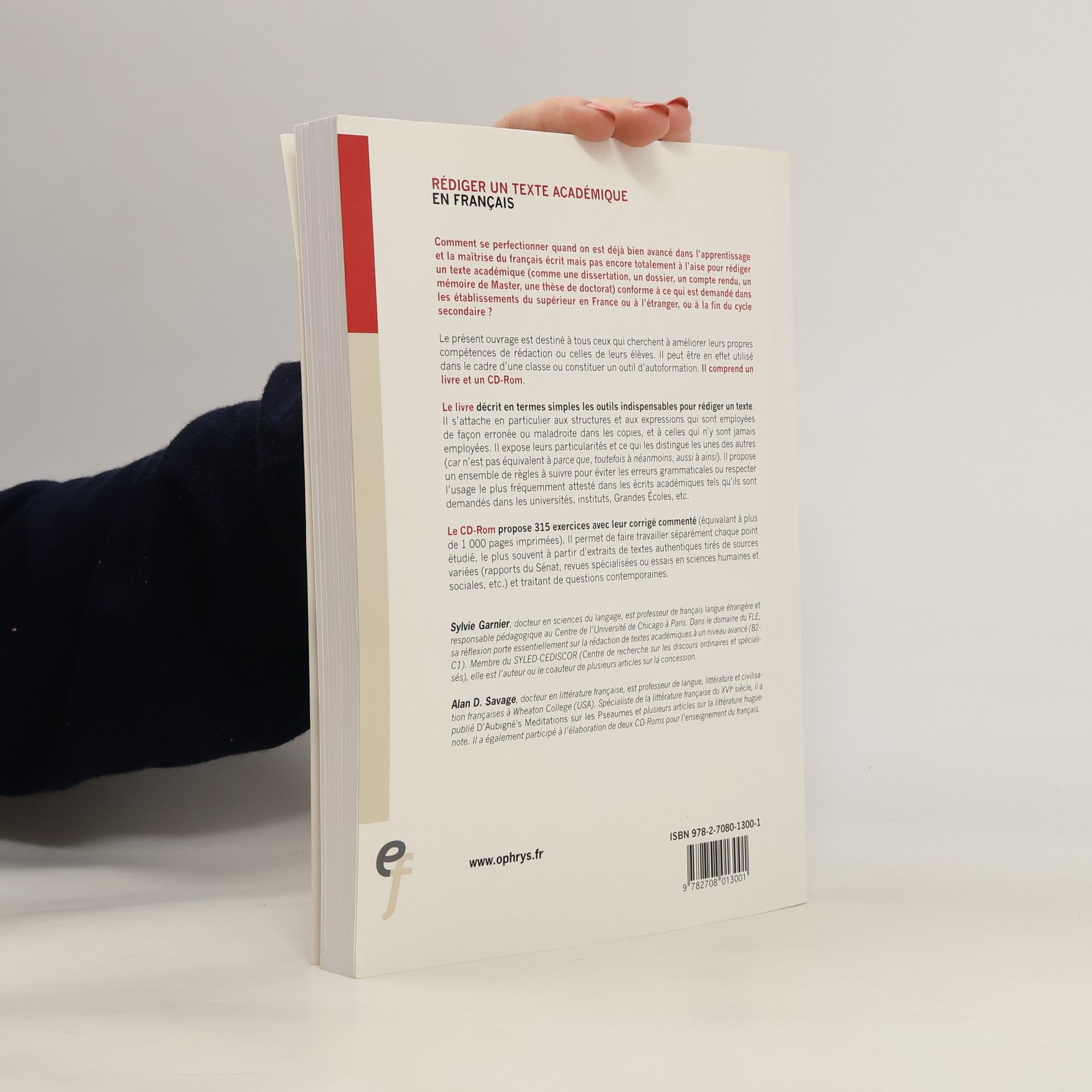 Comment se perfectionner quand on est déjà bien avancé dans l’apprentissage et la maîtrise du français écrit mais pas encore totalement à l’aise pour rédiger un texte académique (comme une dissertation, un dossier, un compte rendu, un mémoire de Master, une thèse de doctorat) conforme à ce qui est demandé dans les établissements du supérieur en France ou à l’étranger, ou à la fin du cycle secondaire ? Le présent ouvrage est destiné à tous ceux qui cherchent à améliorer leurs propres compétences de rédaction ou celles de leurs élèves. Il peut être en effet utilisé dans le cadre d’une classe ou constituer un outil d’autoformation. Il comprend un livre et un CD-Rom. Le livre décrit en termes simples les outils indispensables pour rédiger un texte. Il s’attache en particulier aux structures et aux expressions qui sont employées de façon erronée ou maladroite dans les copies, et à celles qui n’y sont jamais employées. Il expose leurs particularités et ce qui les distingue les unes des autres (car n’est pas équivalent à parce que, toutefois à néanmoins, aussi à ainsi). Il propose un ensemble de règles à suivre pour éviter les erreurs grammaticales ou respecter l’usage le plus fréquemment attesté dans les écrits académiques tels qu’ils sont demandés dans les universités, instituts, Grandes Écoles, etc.