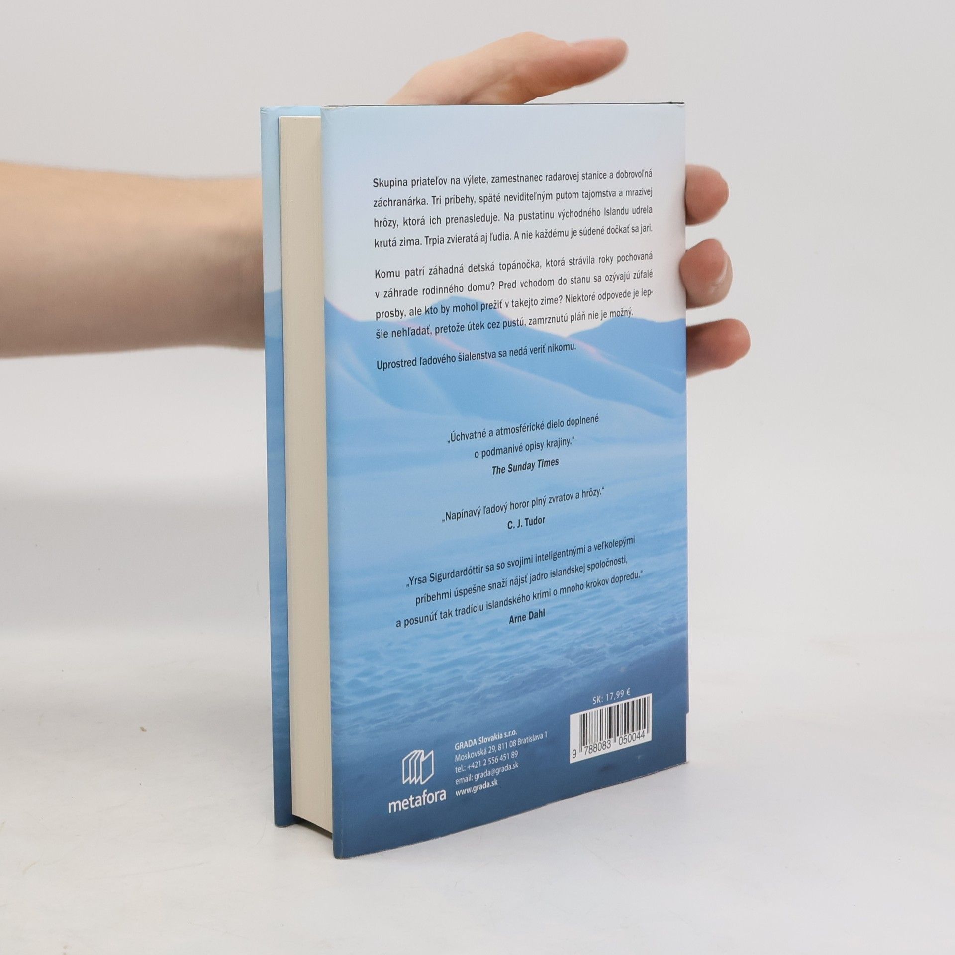 Neľútostná severská zima neušetrí nikoho. Útek nie je možný, no nebezpečenstvo nečíha len vonku. Ďalší mrazivý román od úspešnej Yrsy Sigurdardóttir sľubuje tajomstvo, hrôzu a neľútostnú silu prírody. Skupina priateľov na výlete, zamestnanec radarovej stanice a dobrovoľná záchranárka. Tri príbehy, späté neviditeľným putom tajomstva a mrazivej hrôzy, ktorá ich prenasleduje. Na pustatinu východného Islandu udrela krutá zima. Trpia zvieratá aj ľudia. A nie každému je súdené dočkať sa jari. Komu patrí záhadná detská topánočka, ktorá strávila roky pochovaná v záhrade rodinného domu? Pred vchodom do stanu sa ozývajú zúfalé prosby, ale kto by mohol prežiť v takejto zime? Niektoré odpovede je lepšie nehľadať, pretože útek cez pustú, zamrznutú pláň nie je možný. Uprostred ľadového šialenstva sa nedá veriť nikomu.