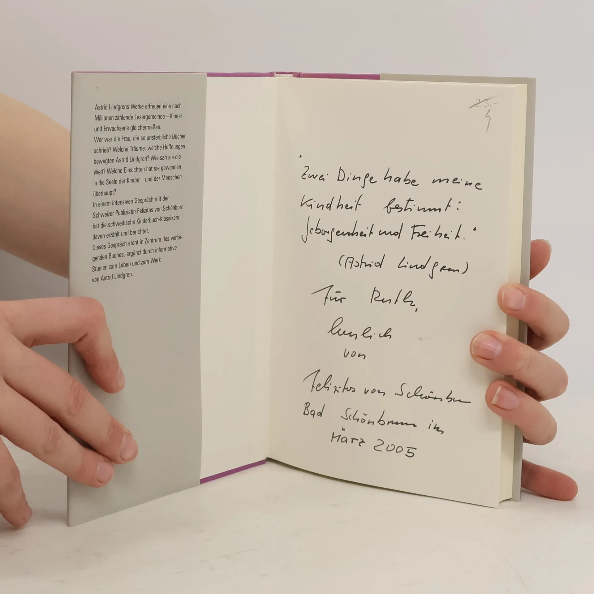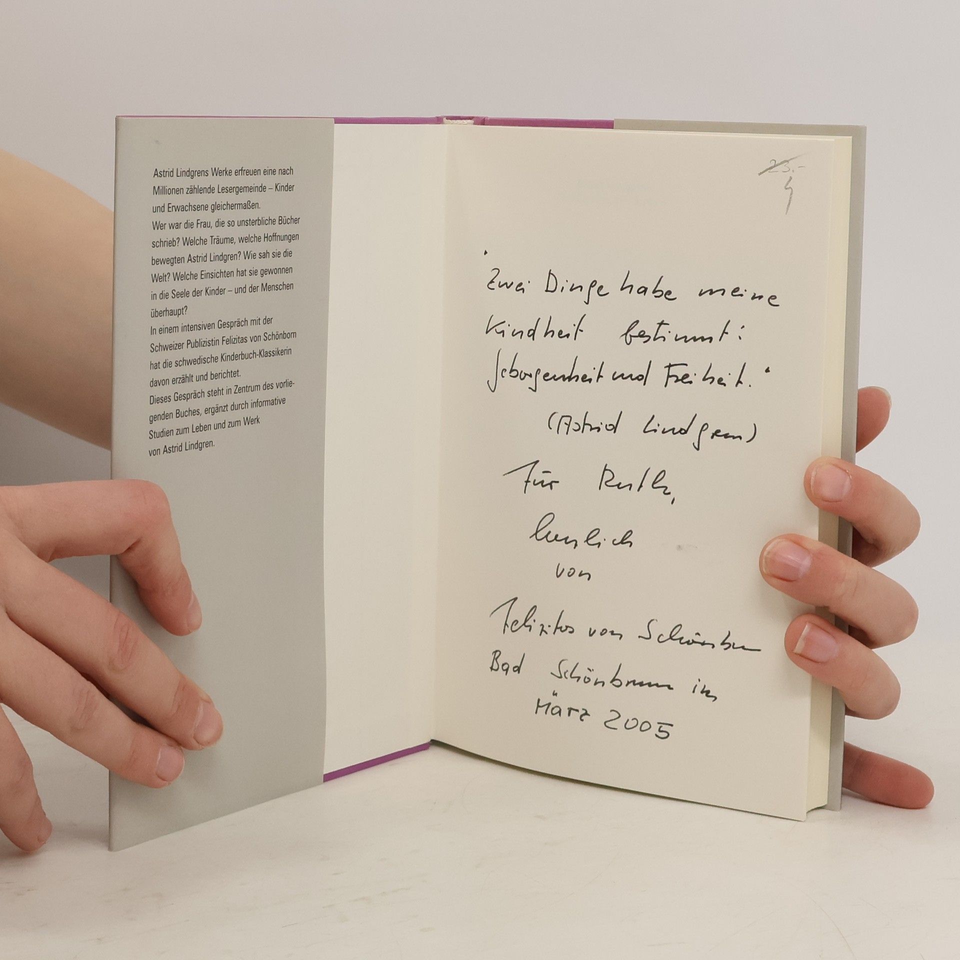 Die Nachricht vom Tod der schwedischen Kinderbuch-Klassikerin bewegt eine Millionen zählende Lesergemeinde - Kinder und Erwachsene gleichermaßen. Wer war die Frau, die so unsterbliche Bücher schrieb? Welche Träume, welche Hoffnungen bewegten Astrid Lindgren? Wie sah sie die Welt? Welche Einsichten hat sie gewonnen in die Seele der Kinder - und der Menschen überhaupt? In einem intensiven Gespräch mit der Schweizer Publizistin Felizitas von Schönborn hat Astrid Lindgren davon erzählt und berichtet. Dieses Gespräch steht im Zentrum unseres Buches, ergänzt durch eine informative und lebendige Studie zu Leben und Werk der heute wohl bekanntesten Kinderbuchautorin.