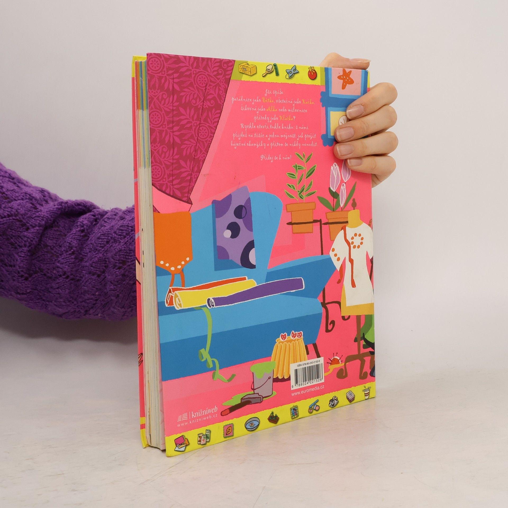 Prima spolek dnešních holek, parádnice Bětka, všetečka Kačka, šikulka Alka a zahradnice Klárka, vám ukáže spoustu báječných věcí, které se dají dělat ve volném čase - ať už to je móda, šperky, oslavy, vaření, kreslení, kutění, sport, pokusy nebo zahradničení. Je libo parfém? Krásné sponky podomácku! Vylepšete si trička! Ze starých džínů nové doplňky! Vlastní šperkovnice! Čokoládový šok! Uspořádejte si slet čarodějnic! A to ještě zdaleka nejsou všechny nápady, které v téhle knížce najdete!