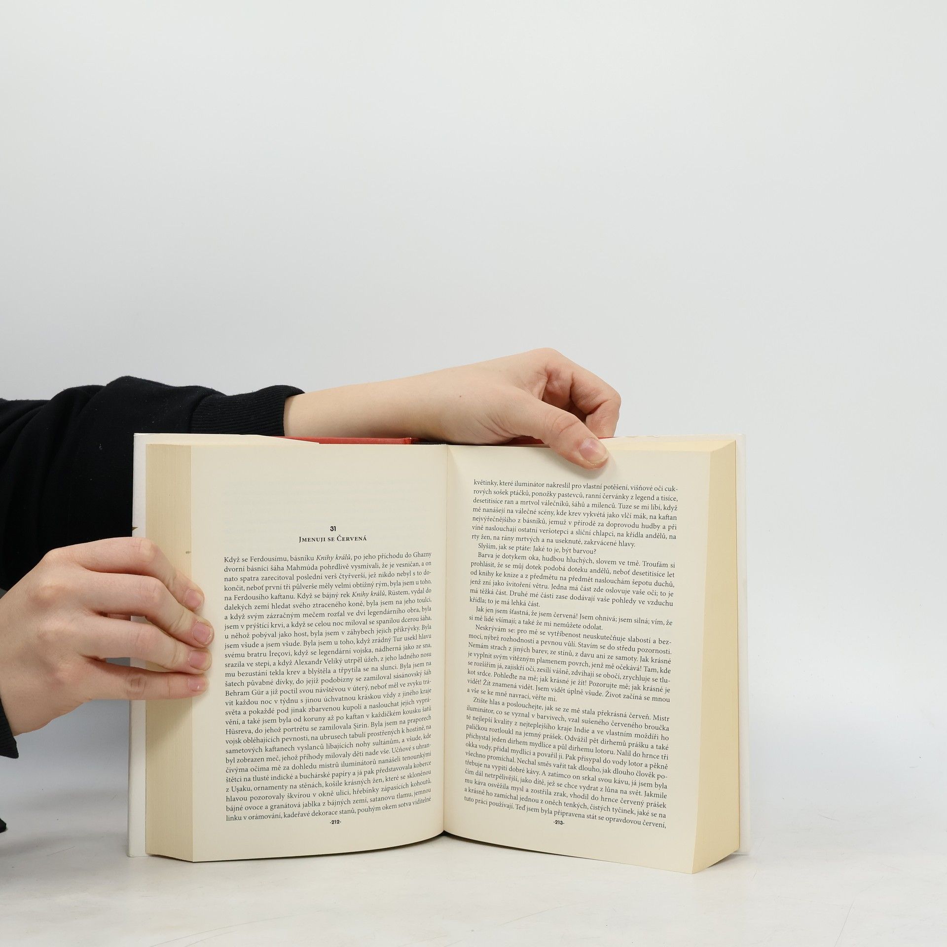 Jednoho zimního večera roku 1591 je v Istanbulu zavražděn přední iluminátor rukopisů a nyní k nám promlouvá ze studny, kam vrah hodil jeho tělo. Jeho hlas se ale ztrácí v koncertu ostatních hlasů, mezi nimiž figurují mistři sultánovy malířské dílny, knihař Kara a jeho milenka Şeküre, dohazovačka Ester, Strýc Efendi i mince, červená barva, smrt, pes nebo třeba strom. Každý z nich předkládá svůj pohled na svět a snaží se nás přesvědčit o své pravdě a je jen na čtenáři, jaký obrázek si z tohoto napínavého příběhu poskládá. Román je vrcholným dílem tohoto tureckého nositele Nobelovy ceny za literaturu (2006). Přeložil Petr Kučera
