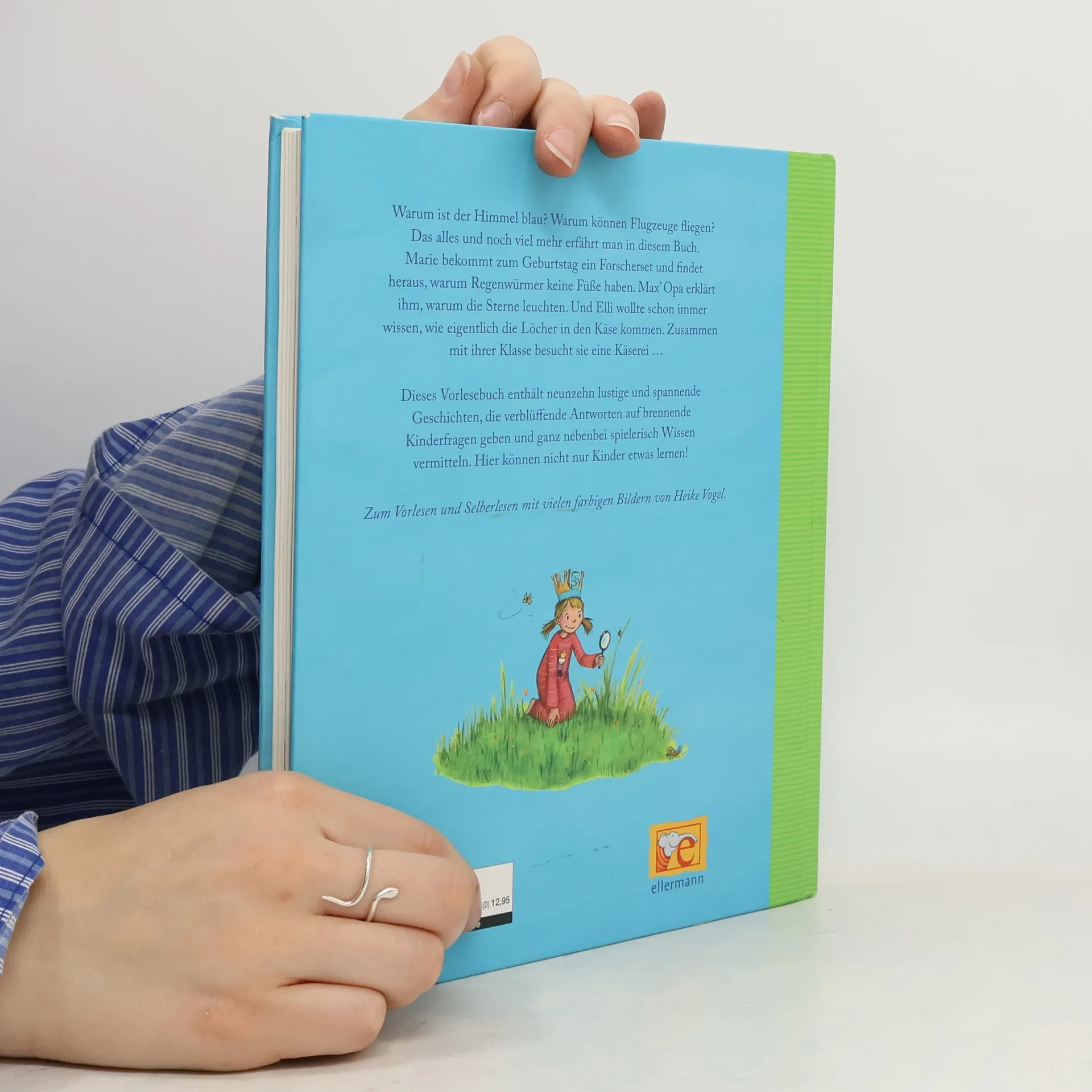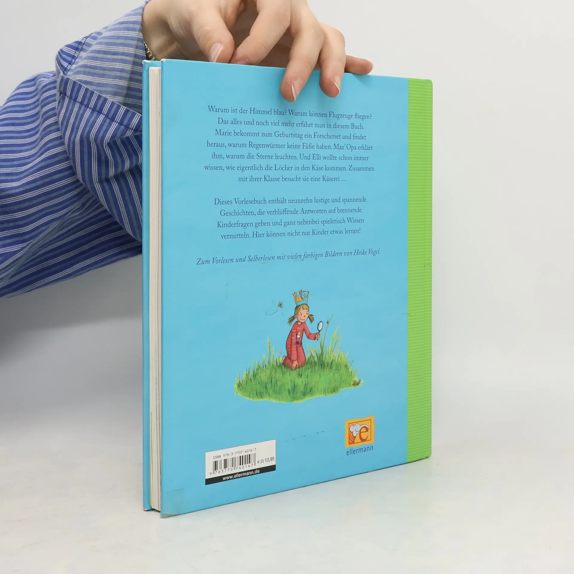 Für alle, die es genau wissen wollen! Hier können nicht nur Kinder etwas lernen! Dieses Vorlesebuch gibt verblüffende Antworten auf brennende Kinderfragen und vermittelt ganz nebenbei spielerisch Wissen. Unter anderem werden folgende Kinderfragen beantwortet: Warum leuchten die Sterne? Wo ist der Wind, wenn er nicht bläst? Wohin geht die Sonne, wenn es Nacht wird? Wie kommt das Salz ins Meer? Wie kommen die Löcher in den Käse? Können Fische ertrinken? Warum bekommt der Specht beim Klopfen kein Kopfweh? Warum fallen Milchzähne aus? Warum haben manche Menschen dunkle Haut?