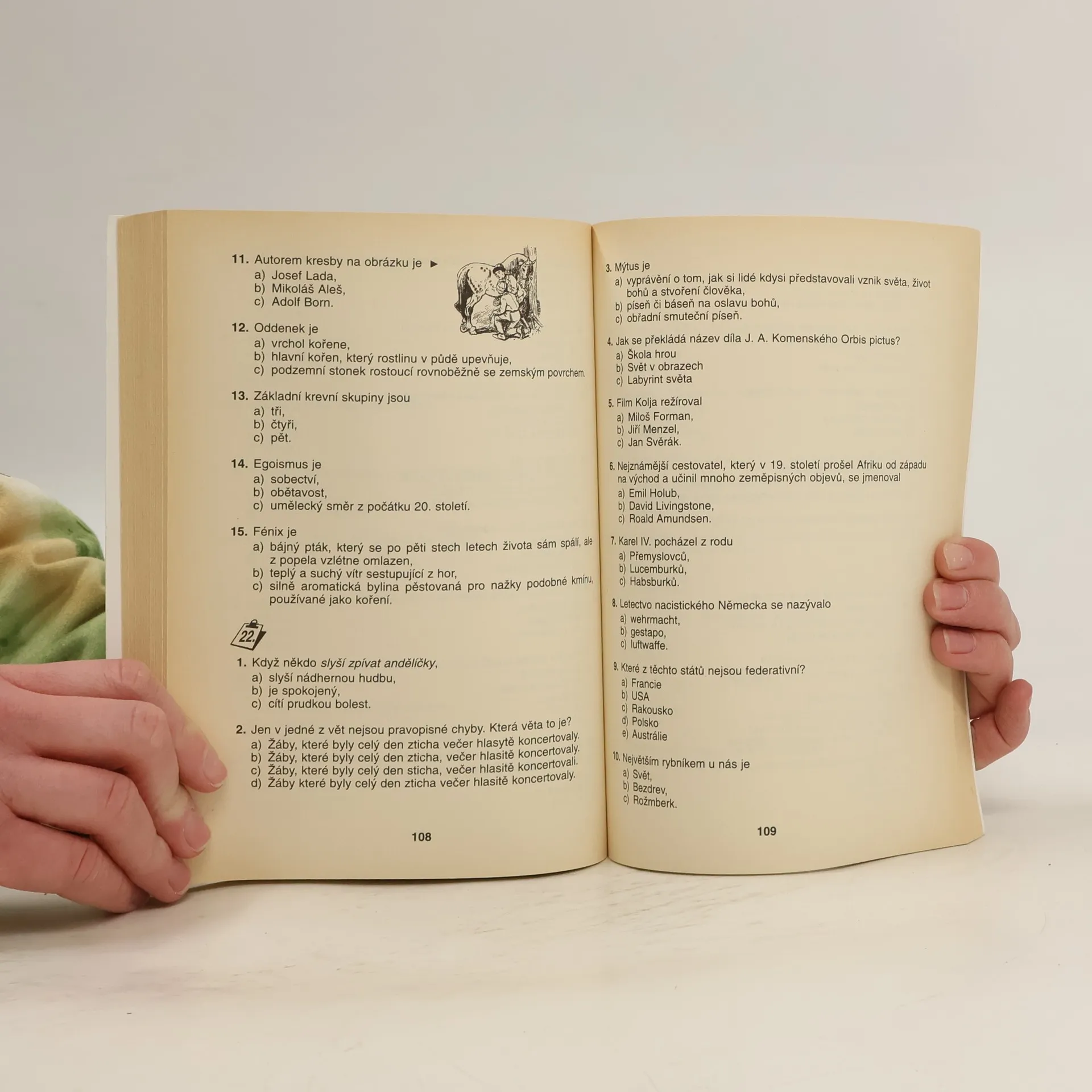 Publikace testovou formou prověřuje a doplňuje znalosti důležitých částí učiva společenskovědních předmětů a napomáhá tak ke kvalitní a úspěšné přípravě k přijímacím zkouškám na střední školy všech typů. Seznamuje žáky s testovou úlohou v dějepise, občanské výchově, literatuře, jak se s ní setkají u přijímacích zkoušek. Radí, kde potřebné znalosti získat, v závěru uvádí klíč správných řešení.
