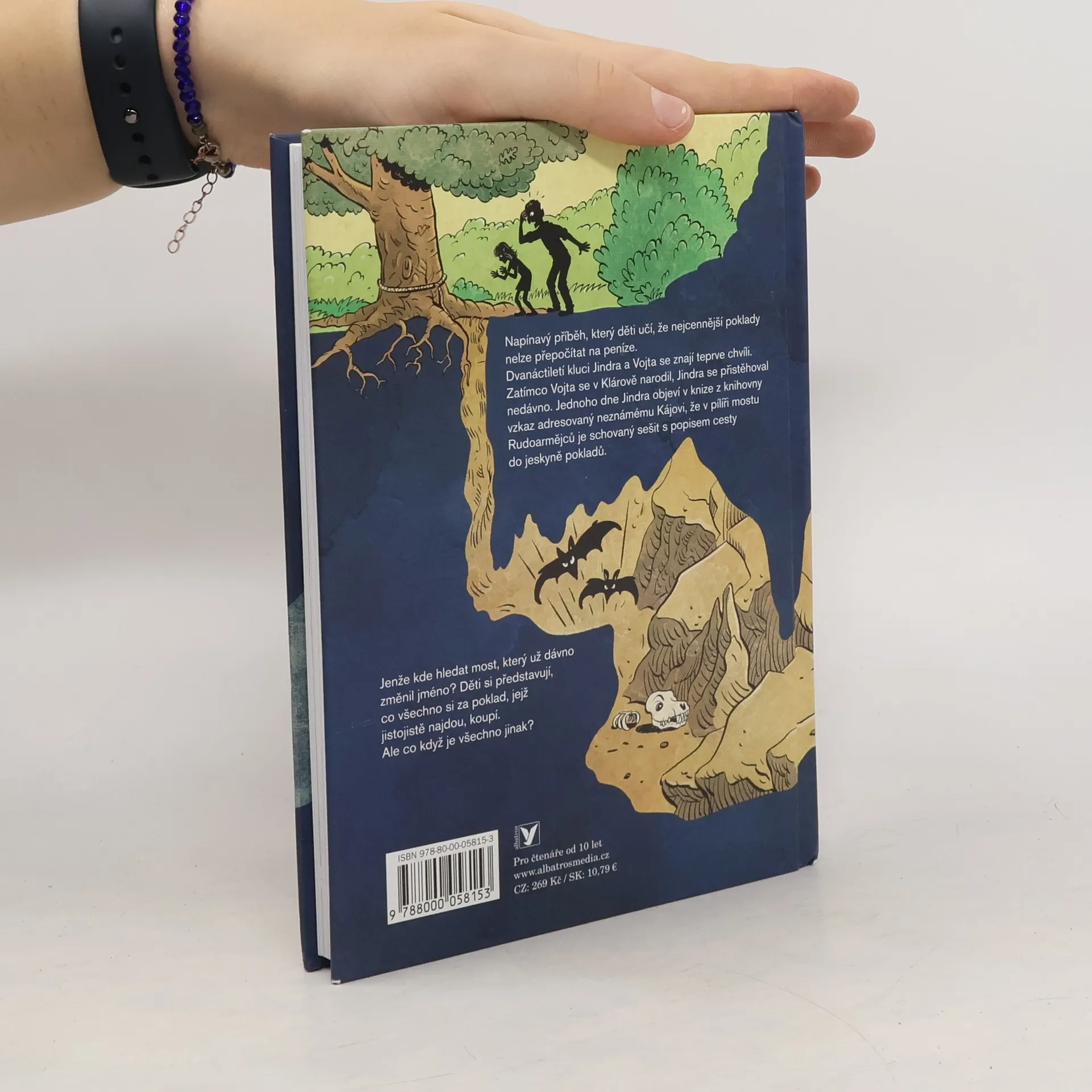 Dobrodružný příběh kamarádů, kteří pátrají po dávno zapomenutém pokladu. Vojta s Jindrou jsou přátelé na život a na smrt. Když spolu objeví tajemný vzkaz a najdou ukrytý sešit s popisem cesty do jeskyně pokladů, vydají se okamžitě najít ten záhadný poklad. Co si asi tak za něj koupí? Ale s pokladem je to trochu jinak... dvanáctiletí průzkumníci nakonec musí bojovat o holý život. Nakladatelská anotace. Kráceno.