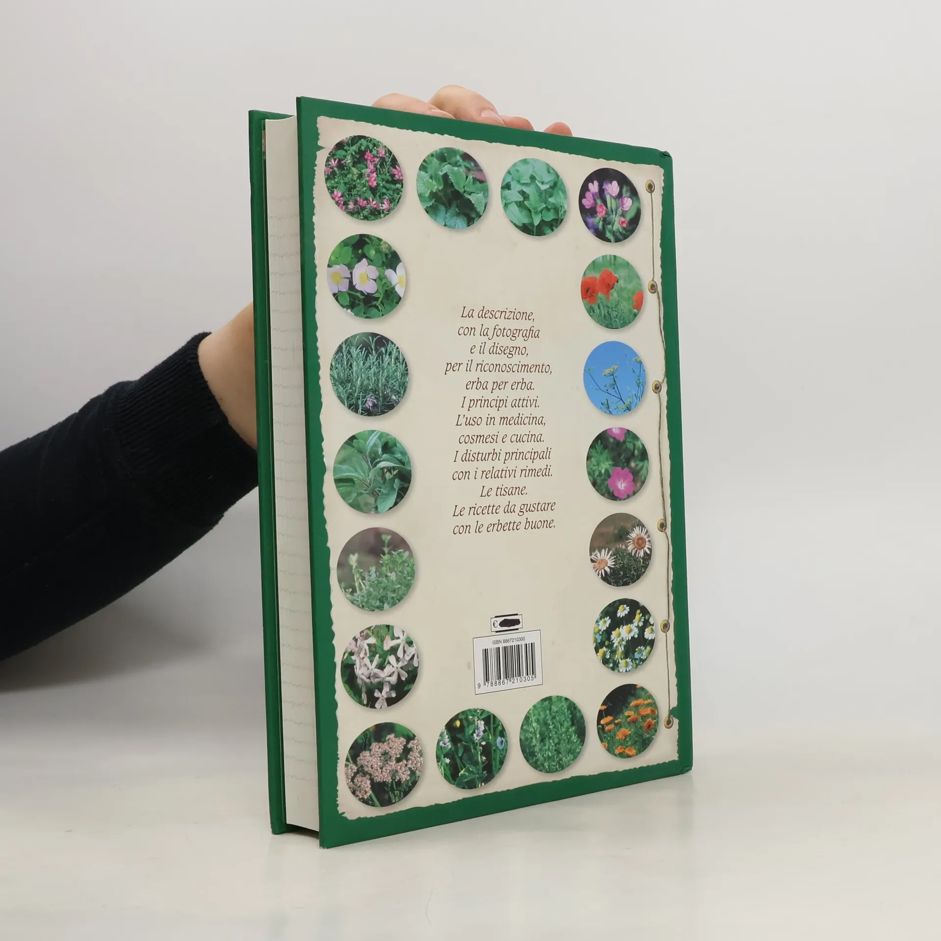 La descrizione, con la fotografia e il disegno, per il riconoscimento, erba per erba. I principi attivi. L'uso in medicina, cosmesi e cucina. I disturbi principali con i relativi rimedi. Le tisane. Le ricette da gustare con le erbette buone.