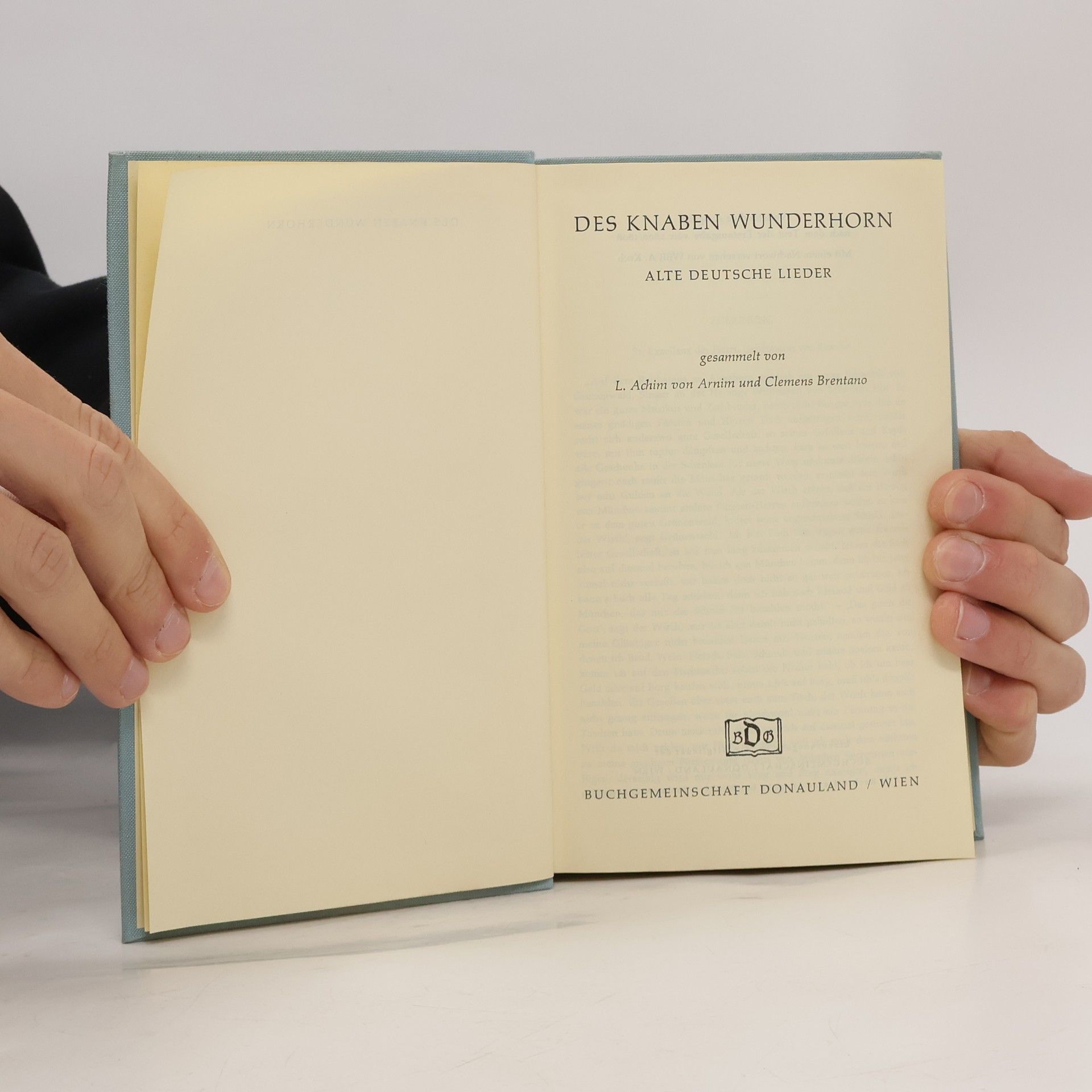 Ludwig Achim von Arnim: Des Knaben Wunderhorn. Alte deutsche Lieder Erstdruck: Heidelberg (Mohr und Zimmer), Frankfurt (J.C.B. Mohr) 1806. Die zweite Nachschrift an den Leser erschien zuerst in der 2. Auflage des 1. Bandes, Heidelberg (Mohr und Winter) 1819. Vollständige Neuausgabe mit einer Biographie des Autors. Großformat, 190 x 270 mm Herausgegeben von Karl-Maria Guth. Berlin 2014. Textgrundlage sind die Ausgaben: Achim von Arnim und Clemens Brentano: Des Knaben Wunderhorn. Alte deutsche Lieder. Studienausgabe in neun Bänden. Herausgegeben von Heinz Rölleke, Band 1, Stuttgart u.a.: Kohlhammer, 1979. Achim von Arnim und Clemens Brentano: Des Knaben Wunderhorn. Alte deutsche Lieder. Studienausgabe in neun Bänden. Herausgegeben von Heinz Rölleke, Band 2, Stuttgart u.a.: Kohlhammer, 1979. Achim von Arnim und Clemens Brentano: Des Knaben Wunderhorn. Alte deutsche Lieder. Studienausgabe in neun Bänden. Herausgegeben von Heinz Rölleke, Band 3, Stuttgart u.a.: Kohlhammer, 1979. Die Paginierung obiger Ausgaben wird in dieser Neuausgabe als Marginalie zeilengenau mitgeführt. Umschlaggestaltung von Thomas Schultz-Overhage unter Verwendung des Bildes: Achim von Arnim (Gemälde von Peter Eduard Ströhling, London 1804). Gesetzt aus Minion Pro, 11 pt.
