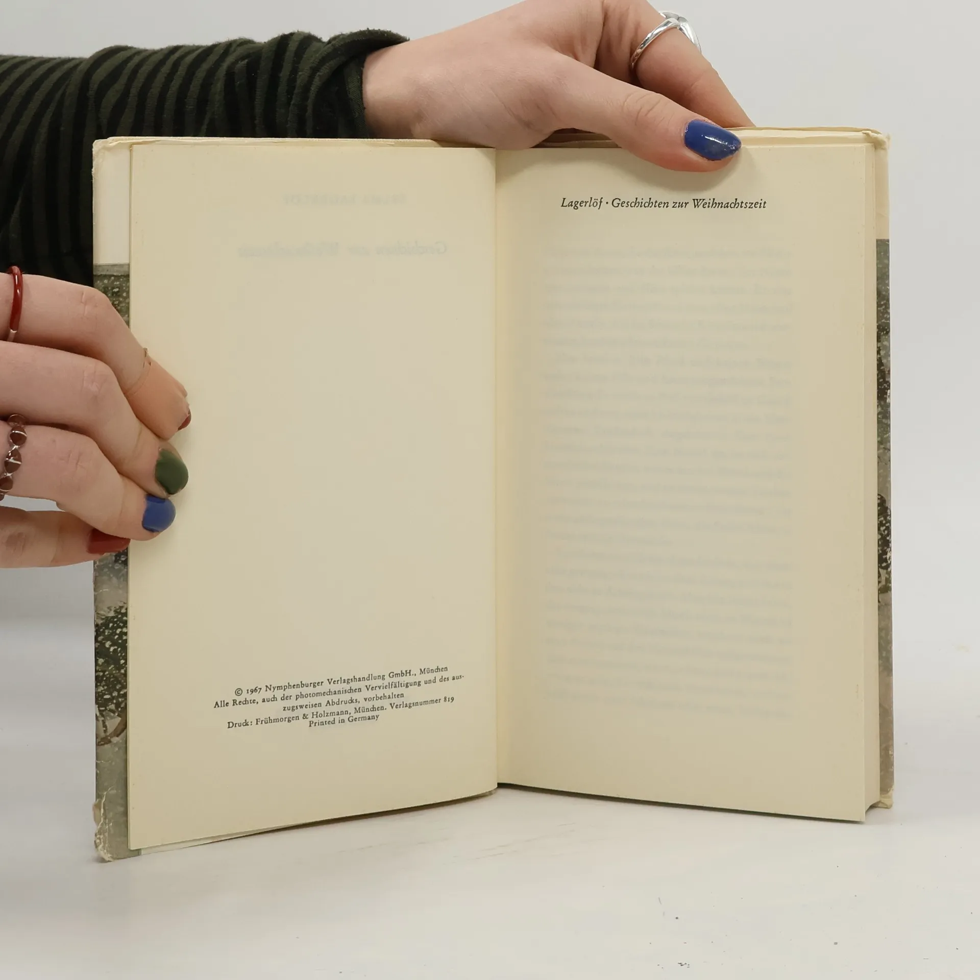 Inhalt: Ein Weihnachtsgast. Die Legende des Luciatags. Die Heilige Nacht. Die Vision des Kaisers. Die Legende von der Christrose. Trollmusik. Eine Weihnachtsgeschichte. Der Weihnachtsmorgen. Gottesfriede. Der Sturm. Der Traumpfannenkuchen. Selma Lagerlöf 1858 geboren, 1940 gestorben. Erlangte mit ihrem Erstlingsroman „Gösta Berlings“ weltweite Anerkennung. 1909 erhielt sie den Nobelpreis für Literatur, 1914 wählte man sie als Mitglied in die Schwedische Akademie der Künste.