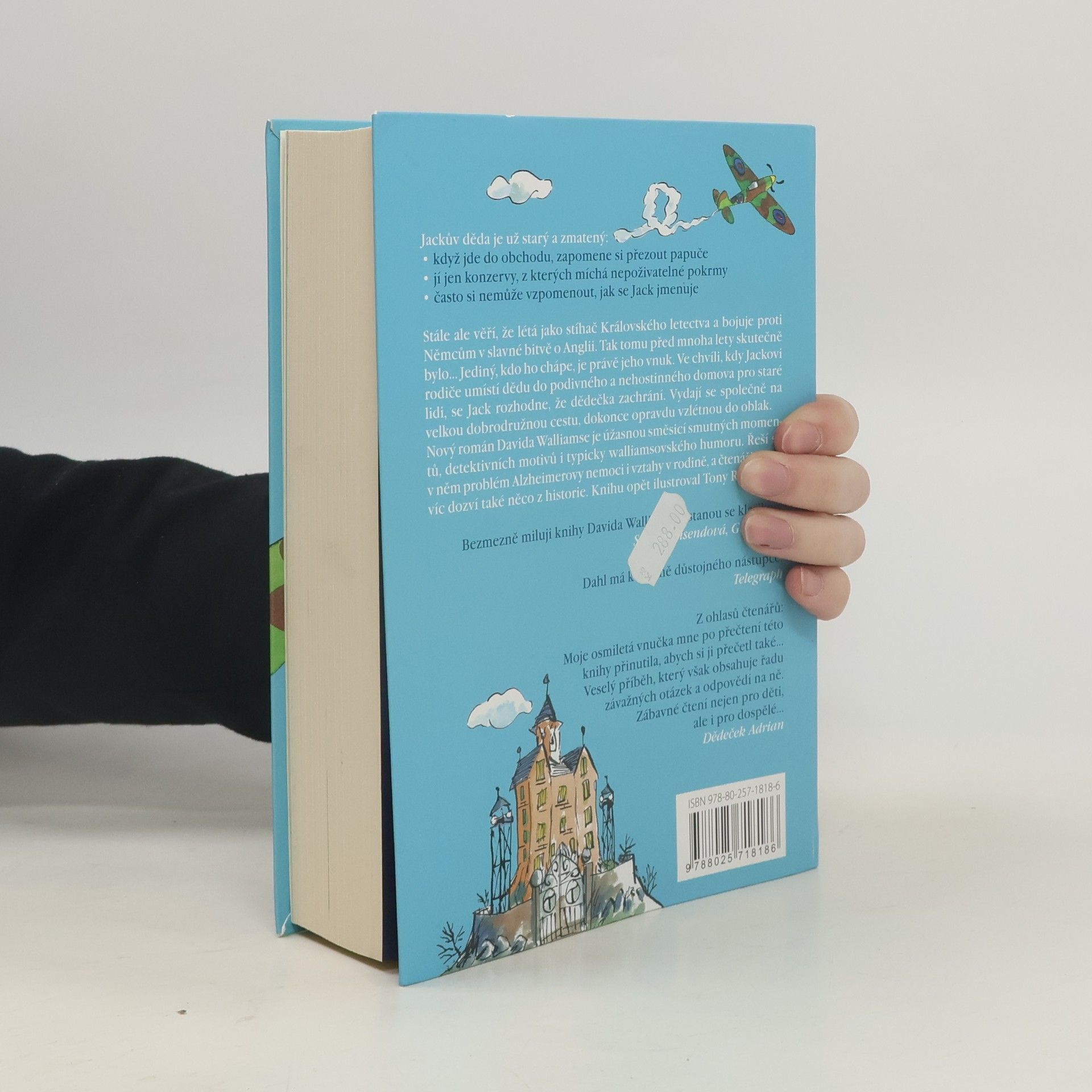 Jackův děda je už starý a zmatený: Když jde do obchodu, zapomene si přezout papuče. Jí jen konzervy, z kterých vytváří nepoživatelné míchanice. Často si nemůže vzpomenout, jak se Jack jmenuje. Stále ale věří, že létá jako stíhač Královského letectva a bojuje proti Němcům v slavné bitvě o Anglii. Tak tomu před mnoha lety skutečně bylo… Jediný, kdo ho chápe, je právě jeho vnuk. Ve chvíli, kdy Jackovi rodiče umístí dědu do podivného a nehostinného domova pro staré lidi, se Jack rozhodne, že dědečka zachrání. Vydají se společně na velkou dobrodružnou cestu, dokonce opravdu vzlétnou do oblak. Nový román Davida Walliamse je úžasnou směsicí smutných momentů, detektivních motivů i typicky walliamsovského humoru. Řeší se v něm problém Alzheimerovy nemoci, vztahy v rodině a čtenáři se navíc dozví i něco z historie. Knihu opět ilustroval Tony Ross.
