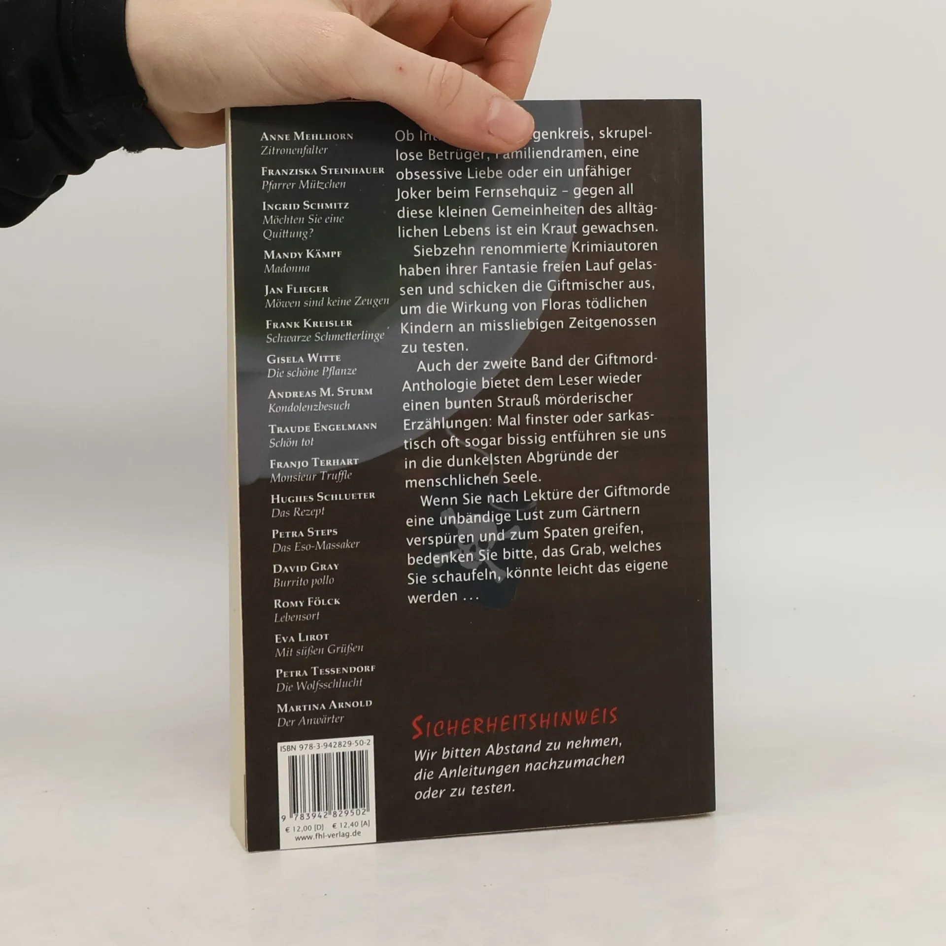Ob Intrigen im Kollegenkreis, skrupellose Betrüger, Familiendramen, eine obsessive Liebe oder ein unfähiger Joker beim Fernsehquiz - gegen all diese kleinen Gemeinheiten des alltäglichen Lebens ist ein Kraut gewachsen. Siebzehn renommierte Krimiautoren haben ihrer Fantasie freien Lauf gelassen und schicken die Giftmischer aus, um die Wirkung von Floras tödlichen Kindern an missliebigen Zeitgenossen zu testen. Auch der zweite Band der Giftmord-Anthologie bietet dem Leser wieder einen bunten Strauß mörderischer Erzä Mal finster oder sarkastisch oft sogar bissig entführen sie uns in die dunkelsten Abgründe der menschlichen Seele. Wenn Sie nach Lektüre der Giftmorde eine unbändige Lust zum Gärtnern verspüren und zum Spaten greifen, bedenken Sie bitte, das Grab, welches Sie schaufeln, könnte leicht das eigene werden.