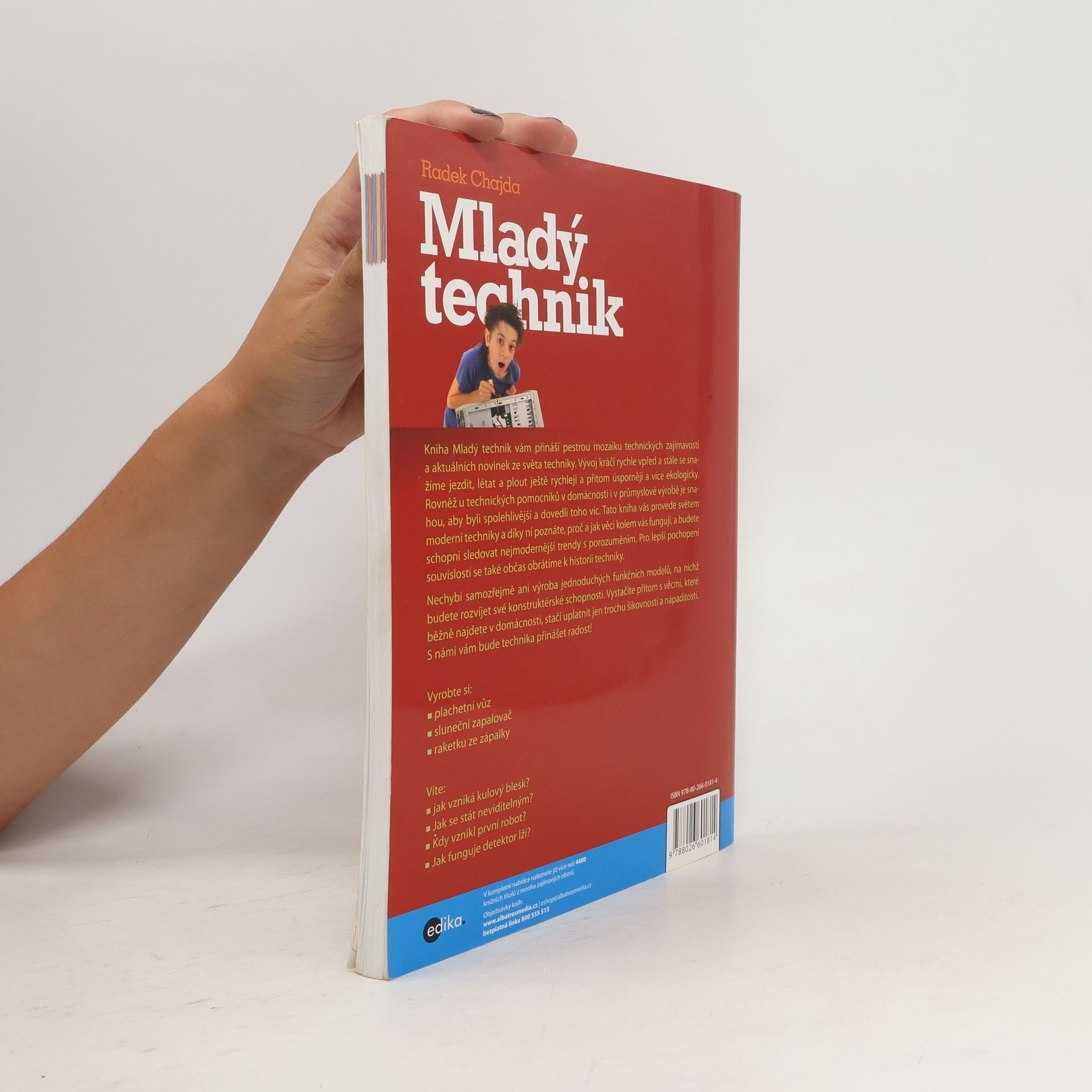Kniha Mladý technik je určena všem mladým zájemcům o techniku. Provede vás světem moderní techniky a díky ní porozumíte tomu, proč a jak věci kolem vás fungují, a budete schopni sledovat nejmodernější trendy s porozuměním. Pro lepší pochopení souvislostí se také občas obrátíme k historii techniky. Nechybí ani výroba jednoduchých funkčních modelů, na nichž budete rozvíjet své konstruktérské schopnosti. Vystačíte s věcmi, které běžně najdete v domácnosti, stačí uplatnit jen trochu šikovnosti a nápaditosti.