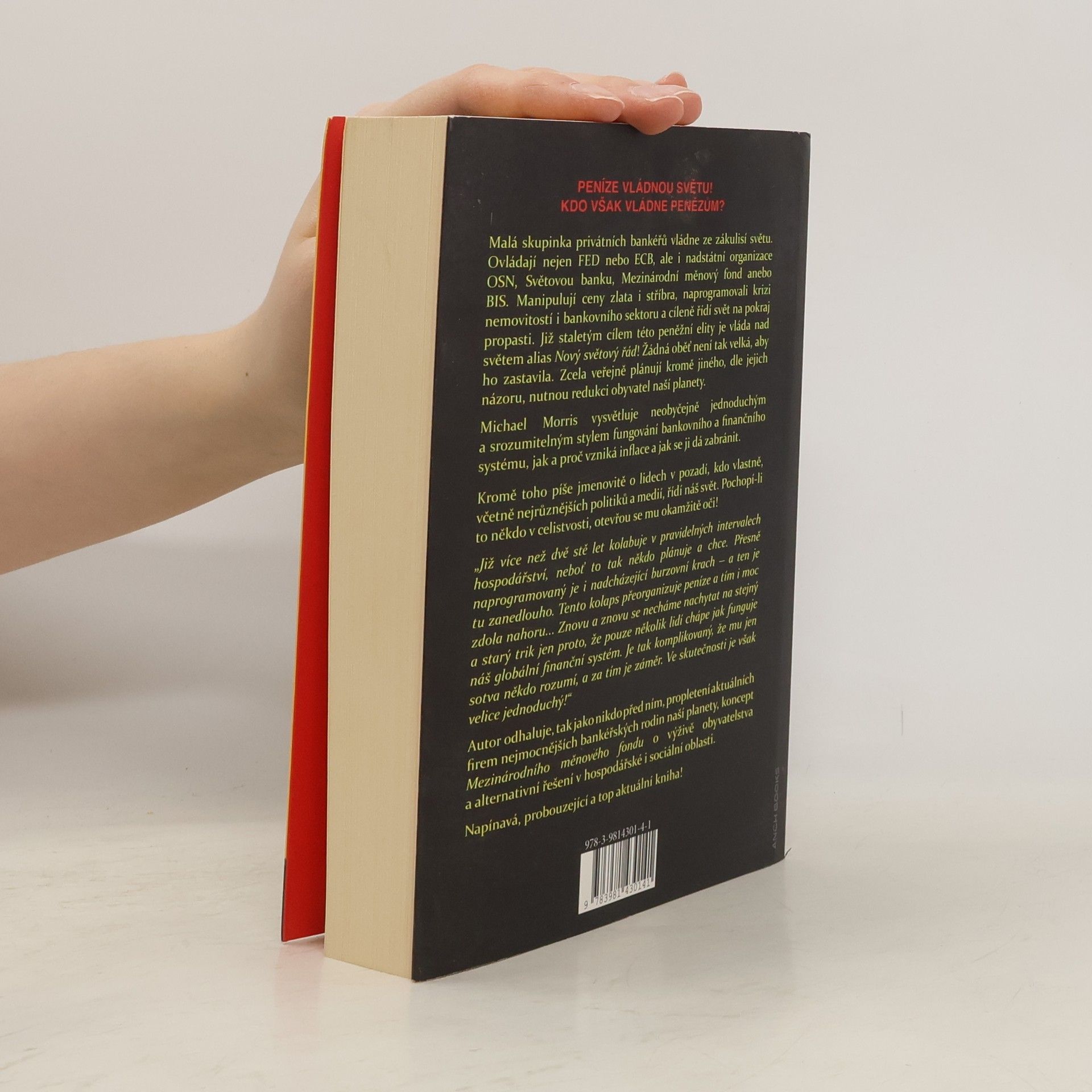 Peníze vládnou světu! Kdo však vládne penězům? Malá skupinka privátních bankéřů vládne ze zákulisí světu. Ovládají nejen FED nebo ECB ale i nadstátní organizace UNO, Světovou banku, Mezinárodní měnový fond anebo BIZ. Manipulují ceny zlata i stříbra, naprogramovali krizi nemovitostí i bankovního sektoru a cíleně řídí svět na pokraj propasti. Již staletým cílem této peněžní elity je vláda nad světem alias nový světový řád! Žádná oběť není tak velká aby jej zastavila. Úplně veřejně plánují kromě jiného, dle jejich názoru, nutnou redukci obyvatel naší planety.