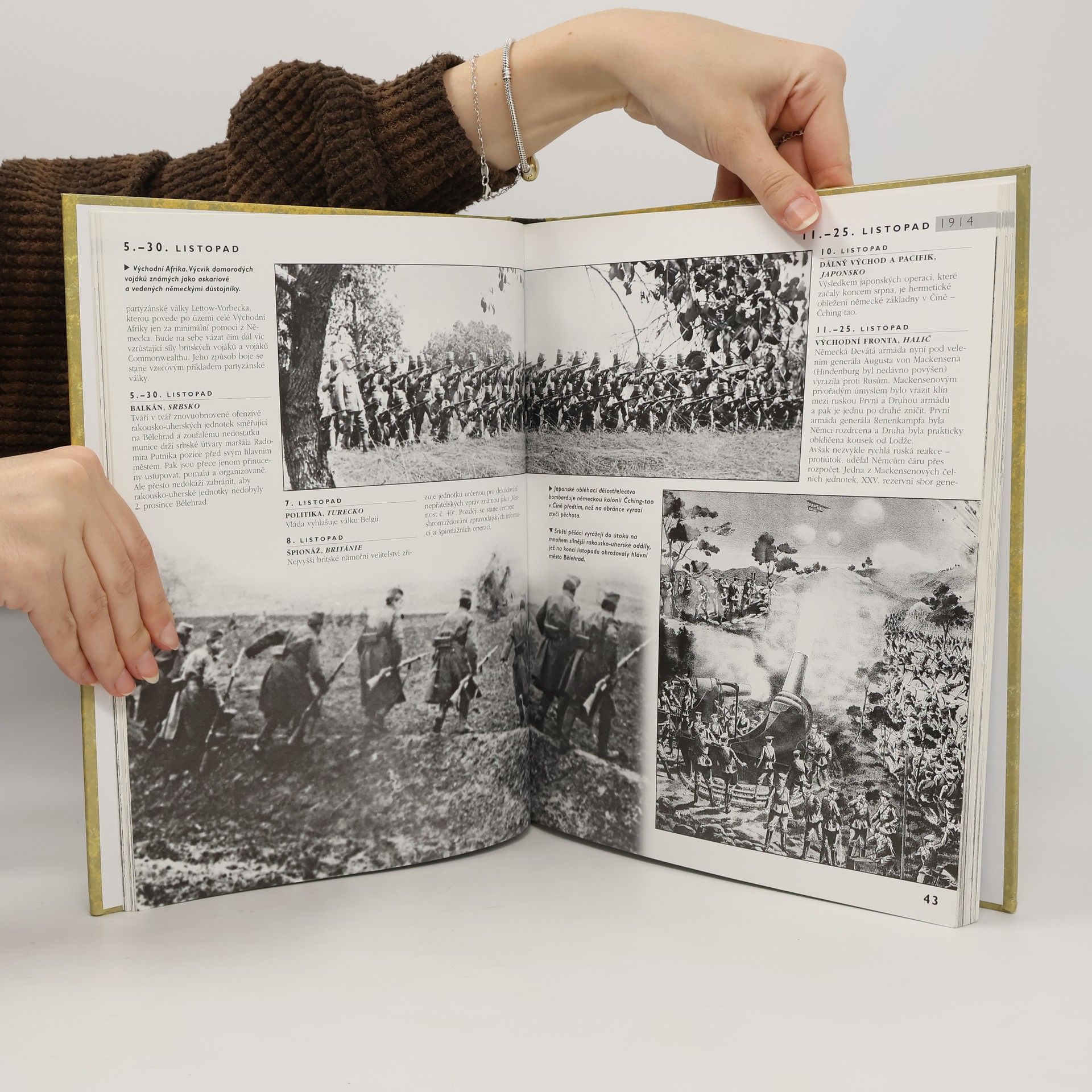 První světová válka den po dni je chronologickou historií tohoto konfliktu od prvních výstřelů v Sarajevu v červnu 1914 až do uzavření příměří v listopadu 1918. Jsou v ní popisovány události na všech bojištích, stejně jako boje ve vzduchu a na moři. Jsou zmiňovány i špionáž, události na domácích frontách, politické okolnosti a technické prostředky, jež měly podstatný vliv na průběh válečných událostí. Mimo to jsou součástí knihy i zvláštní kapitoly pojednávající o klíčových osobnostech války, nejdůležitějších zbraních, událostech a otázkách strategie a taktiky. Kniha obsahuje téměř 400 fotografií a map.