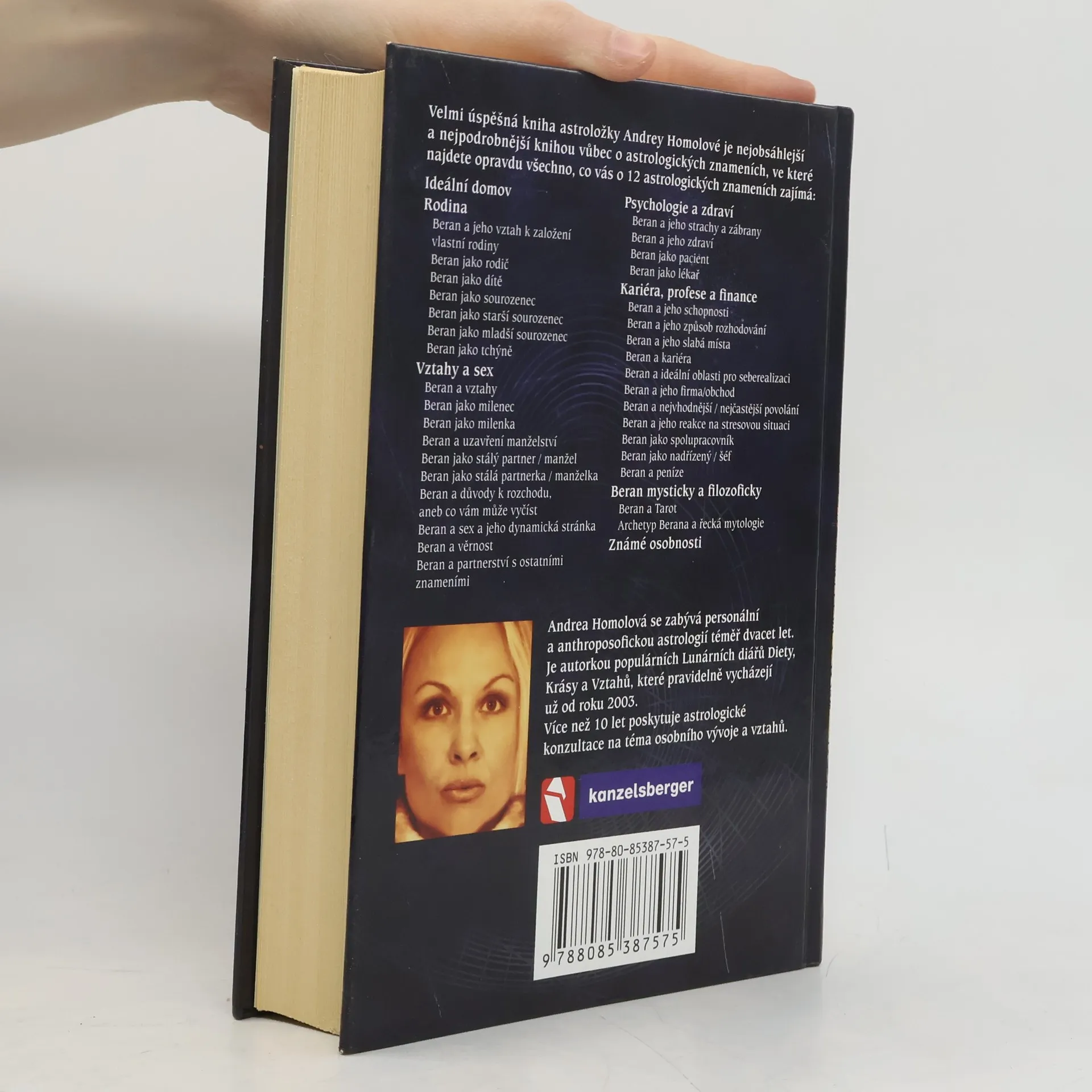 Velmi úspěšná kniha astroložky Andrey Homolové je nejobsáhlejší a nejpodrobnější knhou vůbec o astrologických znameních,ve které najdete opravdu všechno,co vás zajímá:Ideální domov ,rodina,vztahy a sex,psychologie a zdraví,kariéra,profese a finance...