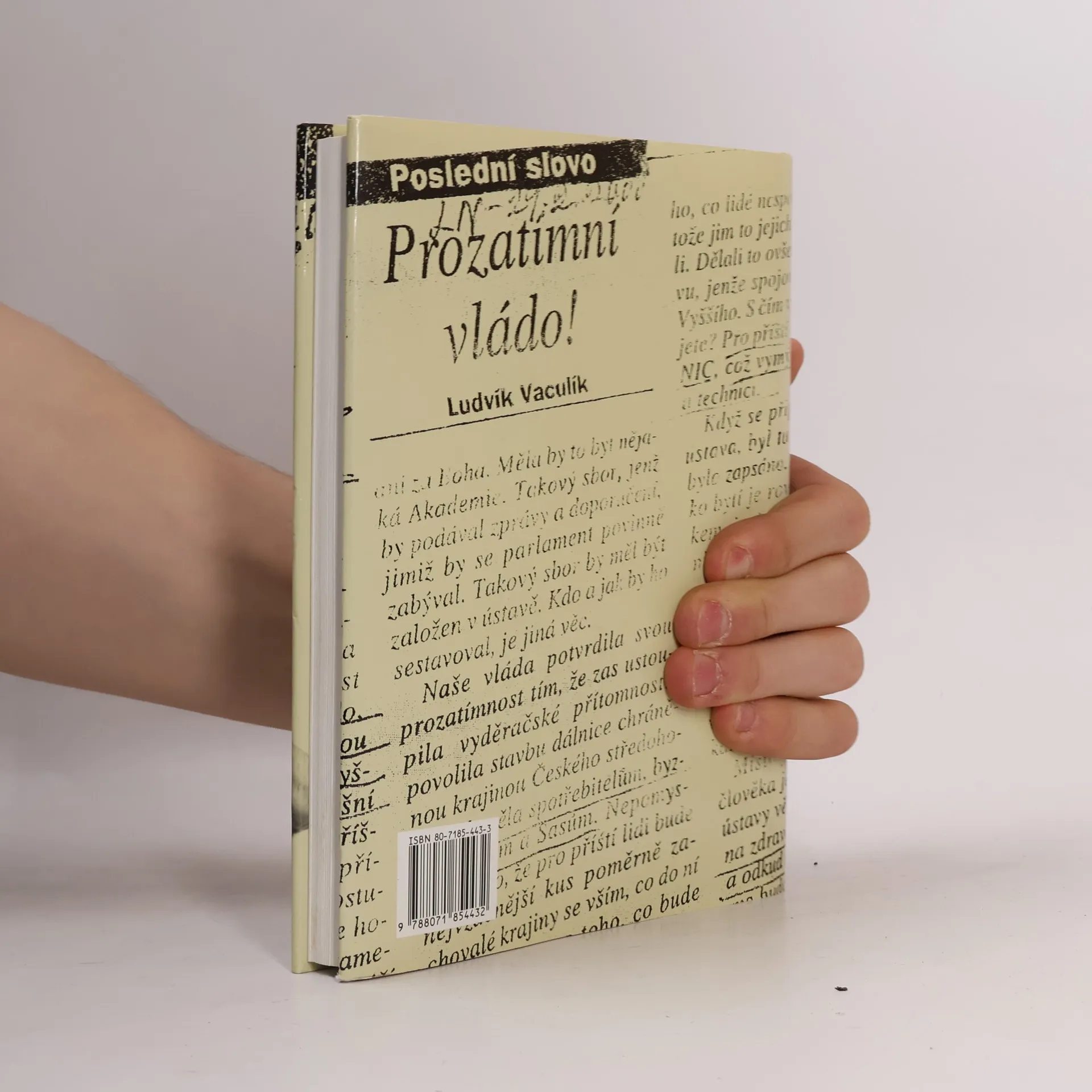 Výbor z fejetonů Výběr z fejetonů, které vycházejí pod názvem Poslední slovo v Lidových novinách. Aktuální události či momentální problémy společnosti sloužívají autorovi k zamyšlení nad obecnějšími jevy společenského dění doma i ve světě. Čteme-li tyto fejetony zpětně v celku, zjistíme, že jsou nejen stále živé, třebaže se týkají věcí již minulých, ale zřetelněji také pocítíme - při rozmanitosti, prolínání a opakování témat -, především onu už pro Vaculíka příslovečnou nekonvenčnost, originalitu myšlení.