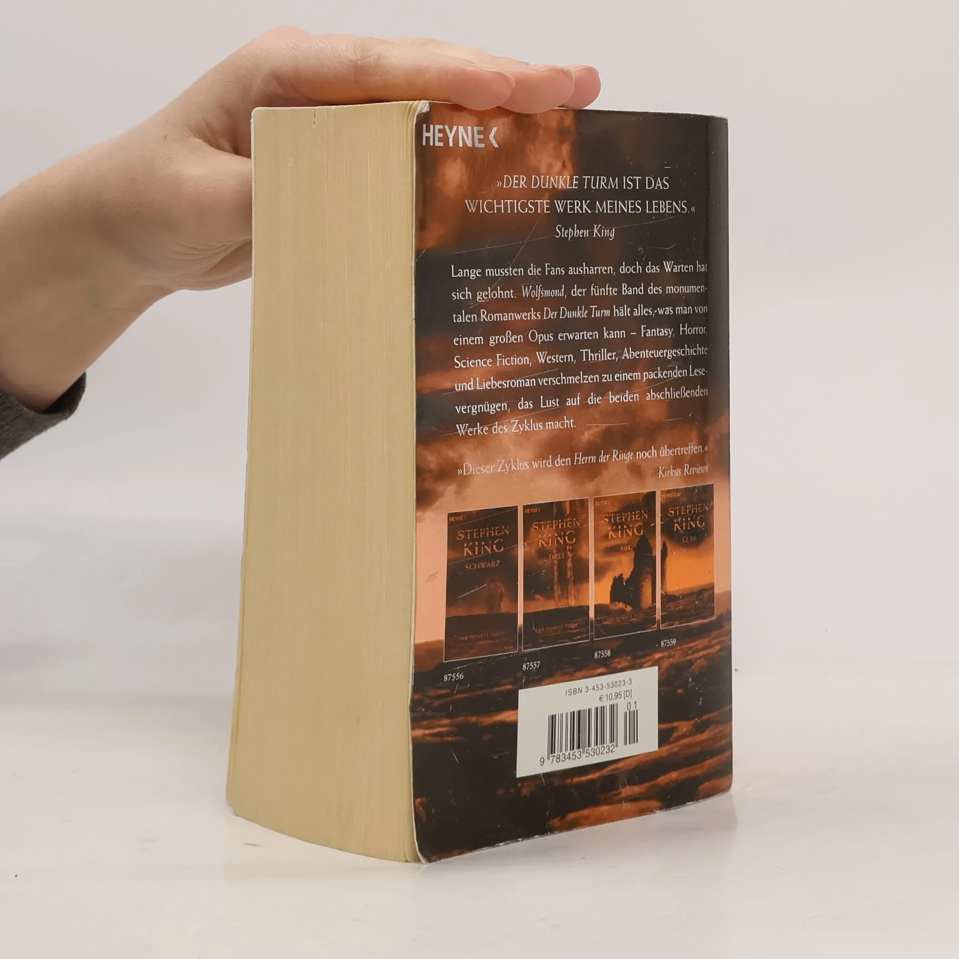 Lange mussten die Fans ausharren, doch das Warten hat sich gelohnt. Wolfsmond, der fünfte Band des monumentalen Romanwerks „Der Dunkle Turm“ hält alles, was man von einem großen Opus erwarten kann – Fantasy, Horror, Science-Fiction, Western, Thriller, Abenteuergeschichte und Liebesroman verschmelzen zu einem packenden Lesevergnügen, das Lust auf die beiden abschließenden Werke des Zyklus macht.