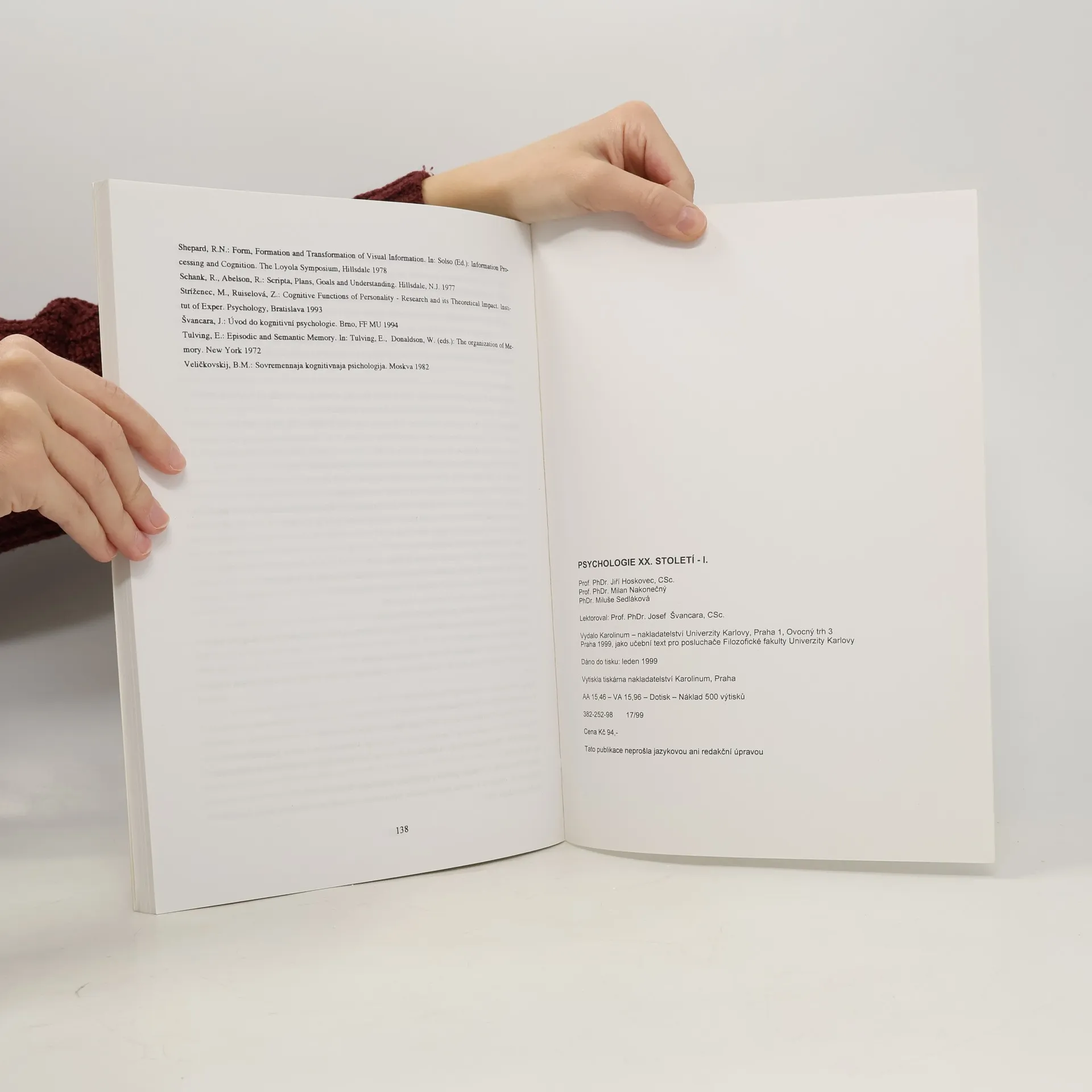 Skripta pro posluchače FF UK. Od Raného behaviorismu k neobehaviorismu - Od raného gestaltismu k neogestaltismu - Humanistická psychologie - Transpersonální psychologie - Kognitivní psychologie,. V roce 1994 stejné ISBN dotisk.