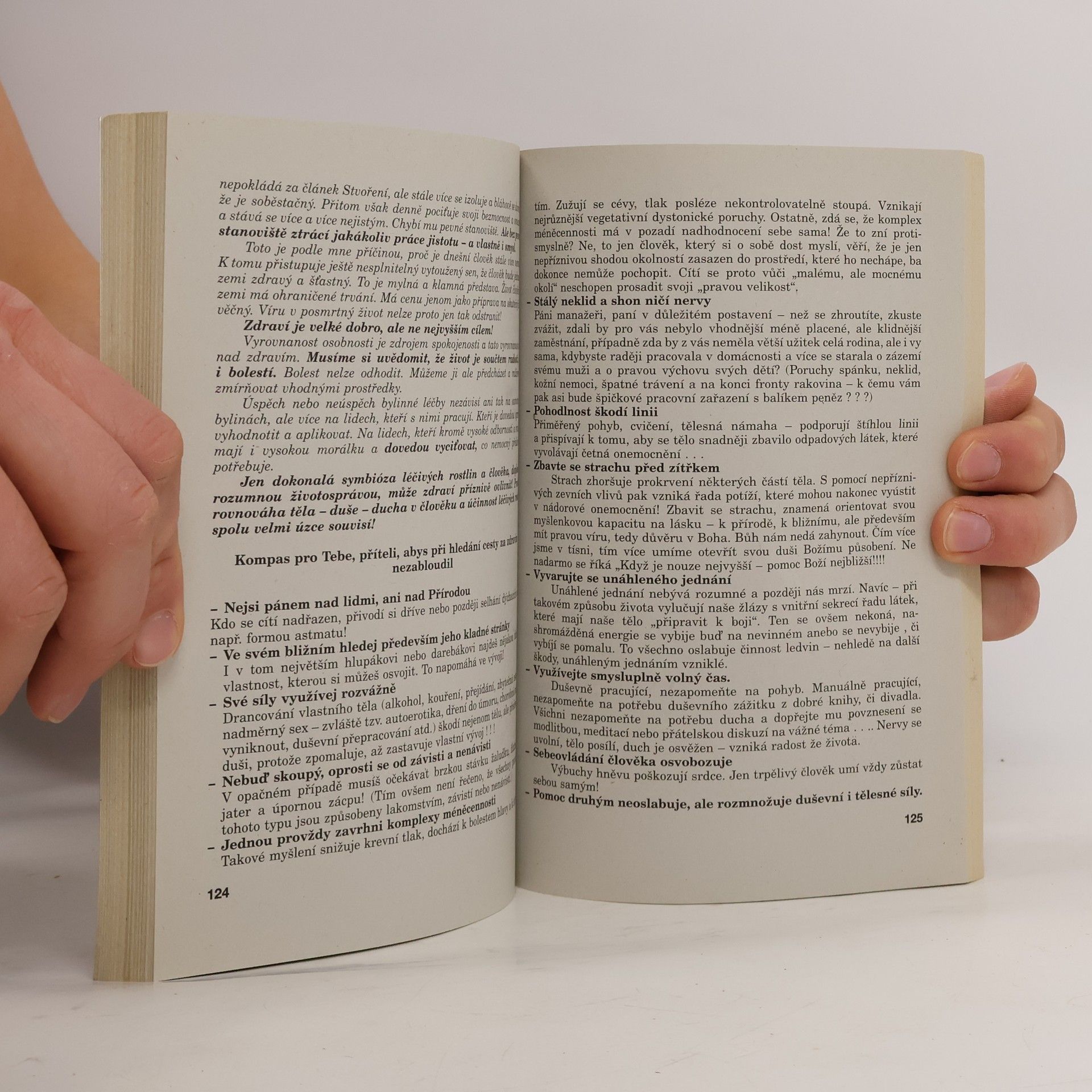 Známý autor hledá a naznačuje souvislosti mezi nemocemi duše a nemocemi těla. Obrací se ke křesťanským zdrojům v aktualizaci božích přikázání, předkládá i ryze praktické a osvědčené bylinářské recepty a rozebírá jednotlivé typy chorob z hlediska etikoterapie.