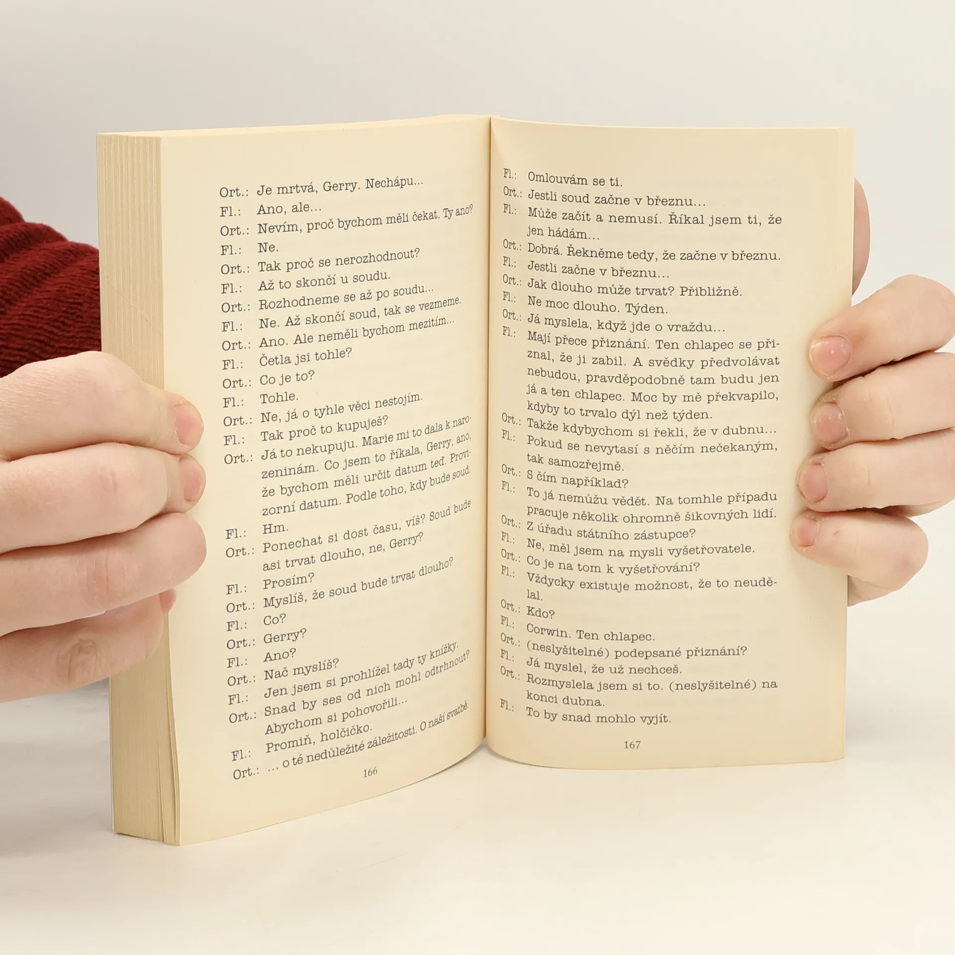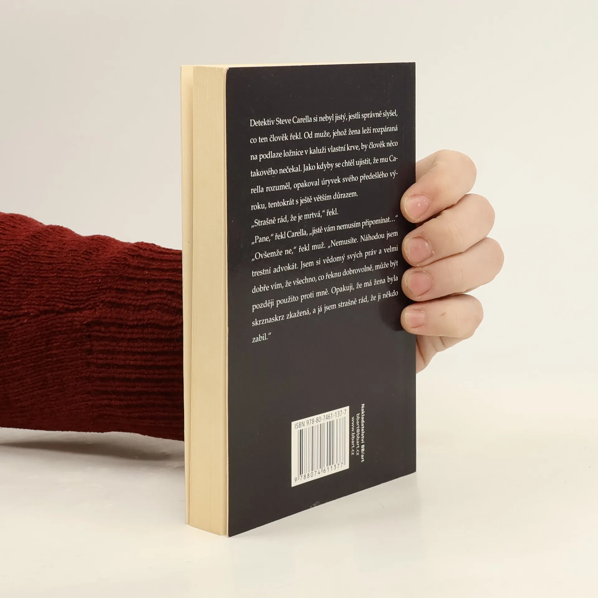Detektiv Steve Carella si nebyl jistý, jestli správně slyšel, co ten člověk řekl. Od muže, jehož žena leží rozpáraná na podlaze ložnice v kaluži vlastní krve, by člověk něco takového nečekal. Ten muž měl dosud na sobě převlečník a klobouk, šálu a rukavice. Stál vedle nočního stolku s telefonem, vysoký muž s úzkým obličejem, jehož svislou plochu dramaticky přerušoval pěstěný šedivý knír odpovídající prošedivělým spánkům. Oči měl jasné a modré a v žádném případě se v nich nezračila bolest ani zármutek. Jako kdyby se chtěl ujistit, že mu Carella rozuměl, opakoval úryvek svého předešlého výroku, tentokrát s ještě větším důrazem. „Strašně rád, že je mrtvá,“ řekl. „Pane,“ řekl Carella, „jistě vám nemusím připomínat…“ „Ovšemže ne,“ řekl muž. „Nemusíte. Náhodou jsem trestní advokát. Jsem si vědomý svých práv a velmi dobře vím, že všechno, co řeknu dobrovolně, může být později použito proti mně. Opakuji, že má žena byla skrznaskrz zkažená, a já jsem strašně rád, že ji někdo zabil.“