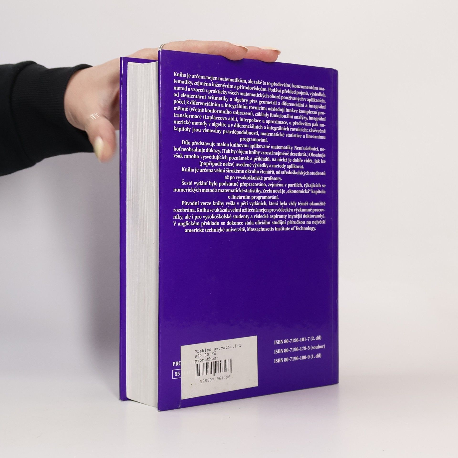 Publikace podává přehled pojmů, výsledků, metod a vzorců ze všech matematických disciplín, používaných v technických a přírodovědných oborech. Kniha je určena velmi širokému okruhu čtenářů, od středoškolských studentů až po vysokoškolské profesory.