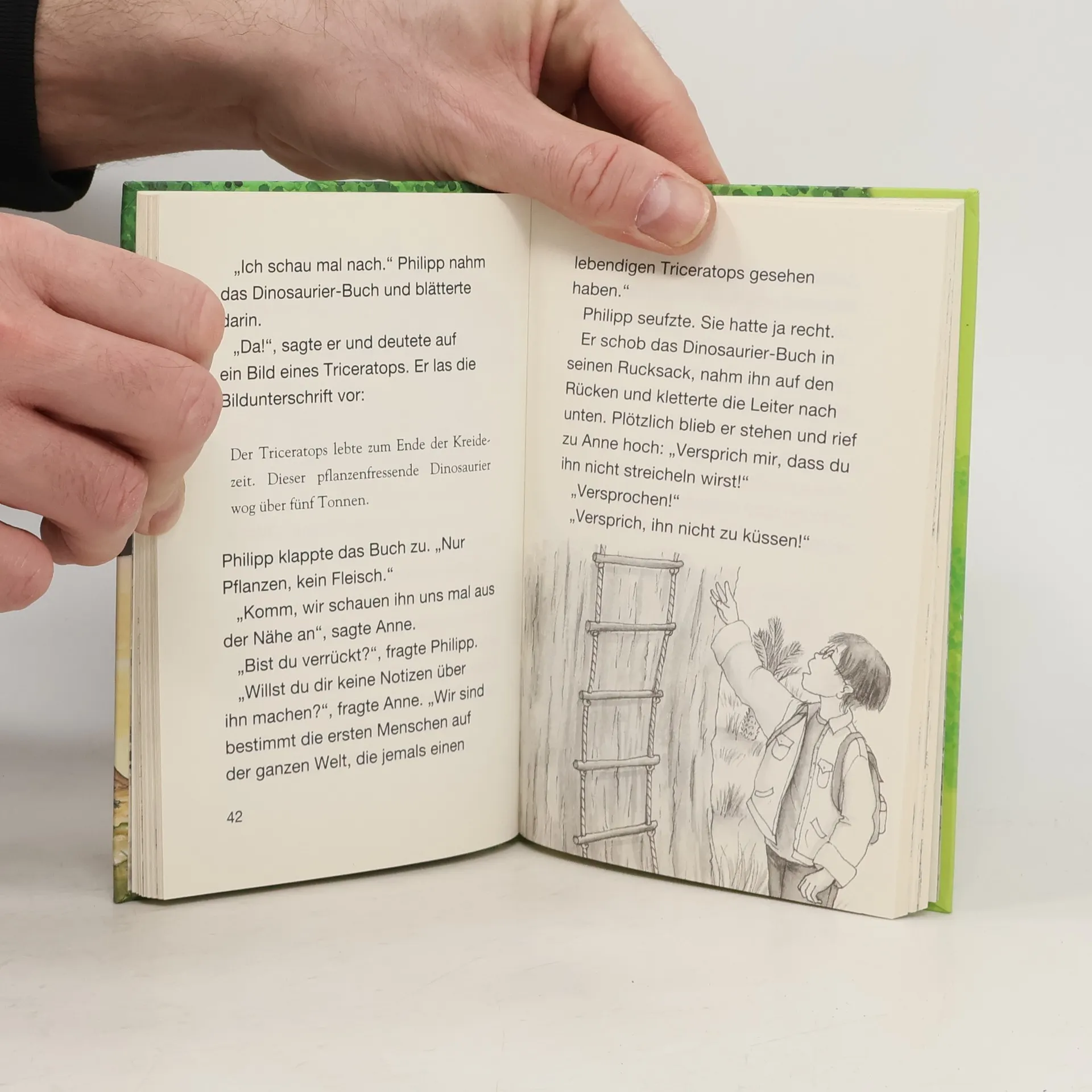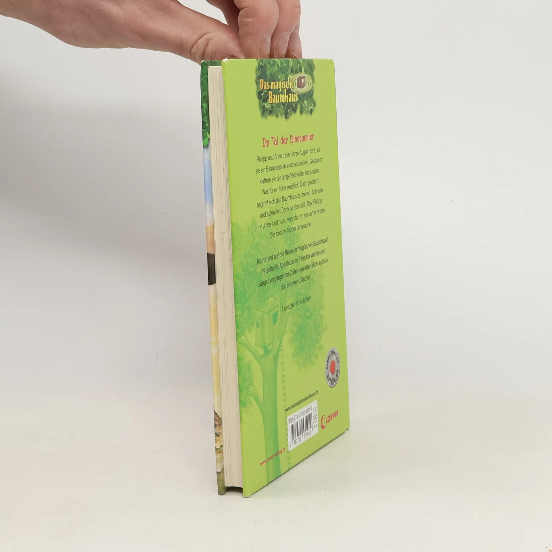 Philipp und Anne trauen ihren Augen nicht, als sie im Wald ein verborgenes Baumhaus entdecken. Gespannt klettern sie die lange Strickleiter nach oben. Was für ein toller Ausblick! Doch plötzlich beginnt sich das Baumhaus zu drehen. Schneller und schneller! Dann ist alles still. Aber Philipp und Anne sind nicht mehr da, wo sie vorher waren. Sie sind im Tal der Dinosaurier ...
