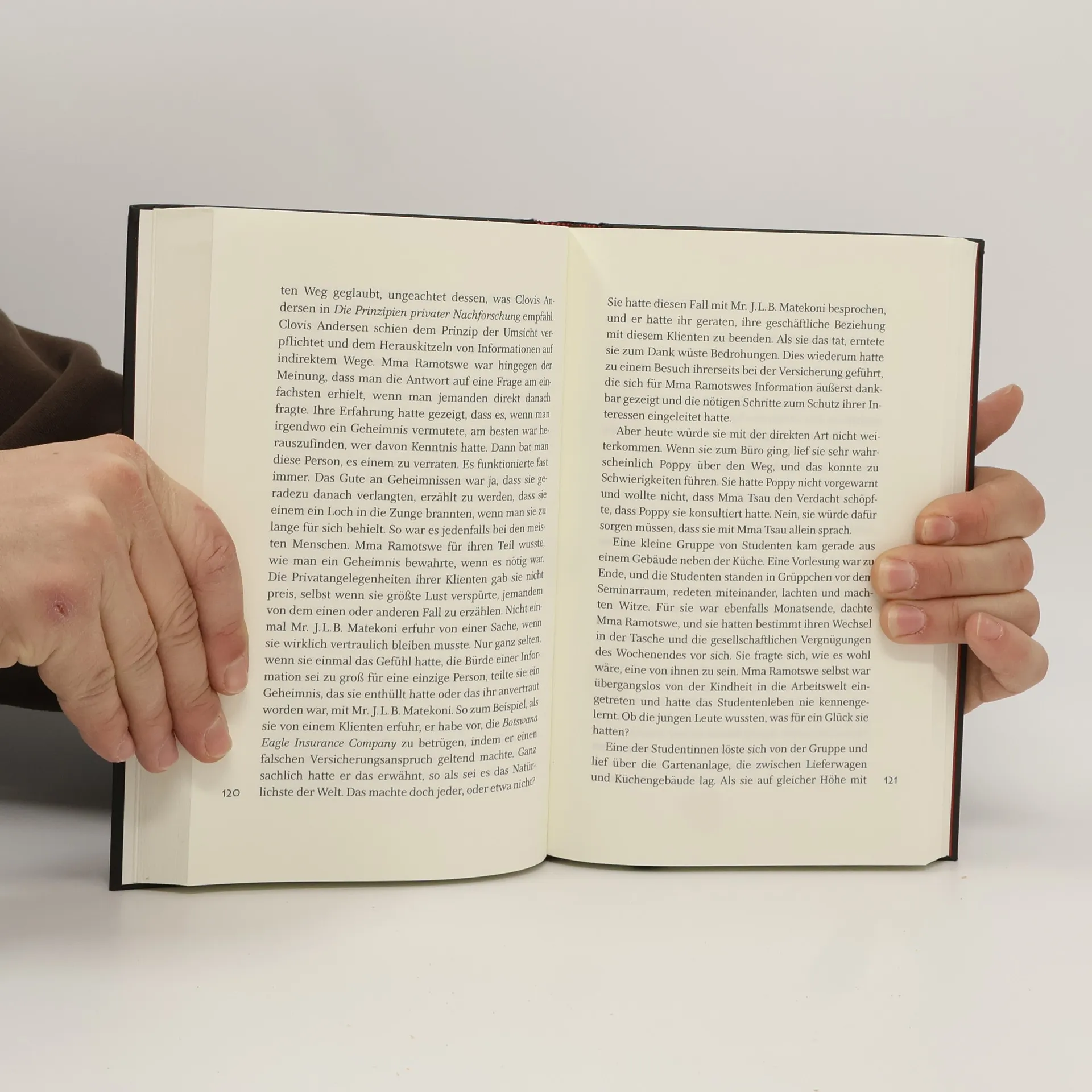Mma Ramotswe betreibt die einzige Frauen-Detektei Botswanas, wo sie sich mit Intuition und Menschenkenntnis der heiklen Fälle ihrer Klienten annimmt. Der britische Erfolgsautor setzt mit diesem Roman seine 'New York Times“'-Bestseller-Reihe fort und stellt 'sein außerordentliches Talent zum Geschichten erzählen und seine bestechende Kenntnis des afrikanischen Alltags unter Beweis' (Los Angeles Times). Nicht selten drehen sich die Fälle von Precious Ramotswe um Untreue – ein Feld, auf dem ihr keiner mehr etwas vormacht. Doch eines Morgens steht in ihrem kleinen Büro über der Autowerkstatt ihres Mannes eine Frau mit einem anderen Problem: Unfreiwillig ist die junge Köchin der Universitätskantine in eine Erpressung verwickelt worden und braucht nun Hilfe. Wenig später wird Mma Ramotswe auch noch darum gebeten, herauszufinden, was für ein düsteres Geheimnis seit einiger Zeit das Klima im Wildreservat Mokolodi vergiftet, ob der liebenswürdige ugandische Doktor Lugeba in seiner Praxis Medikamentenmissbrauch betreibt und, nicht zuletzt, ob der frischgebackene Verlobte ihrer Assistentin auf Abwege geraten ist. Aber viel heißer Rotbuschtee, Ausdauer und ein ausgeprägtes Gespür für die Widersprüche zwischen Modernität und Tradition im Botswana des 21. Jahrhunderts führen die couragierte Detektivin am Ende immer zur Lösung.